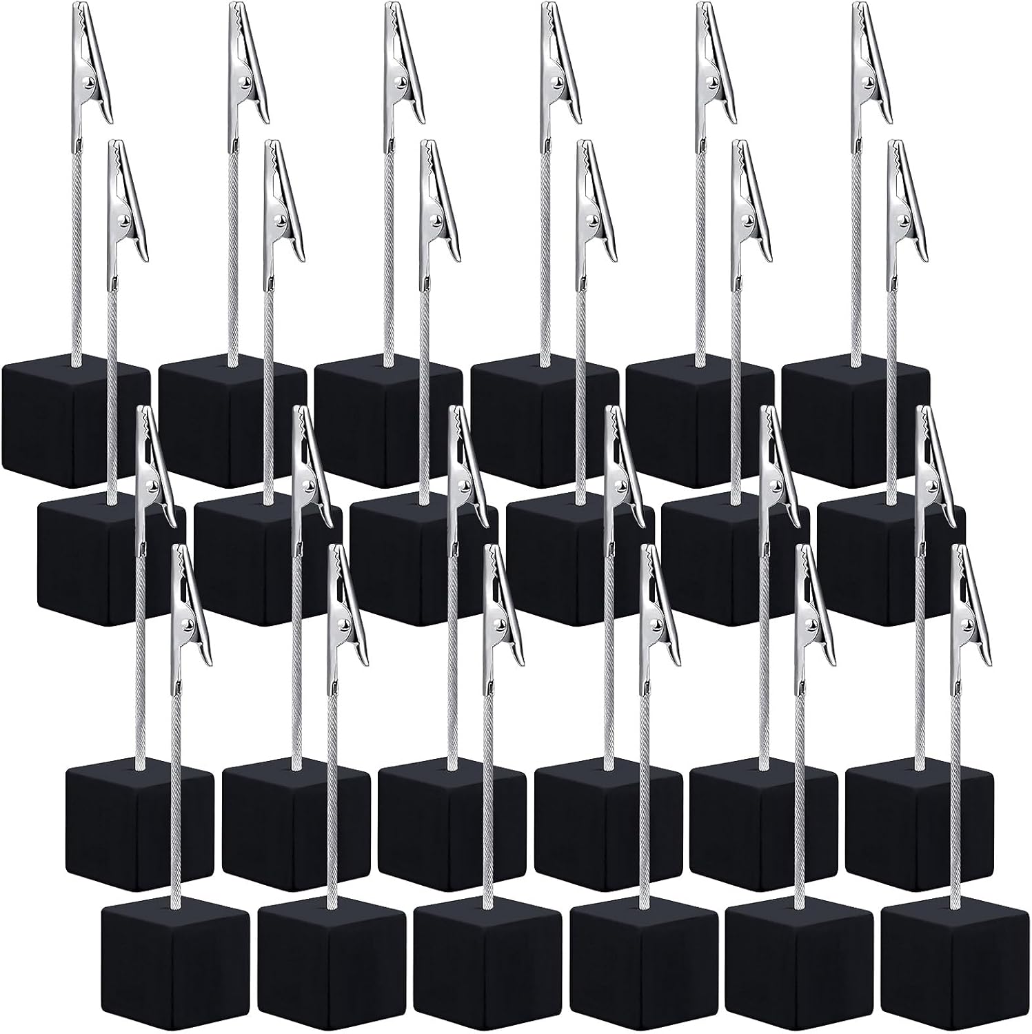 24 Pcs Wooden Memo Clips Holder Lightweight Wood Cube Base with Alligator Clip Clasp Mini Photo Holder Clip Menu Holder for Displaying Number Card (Black)