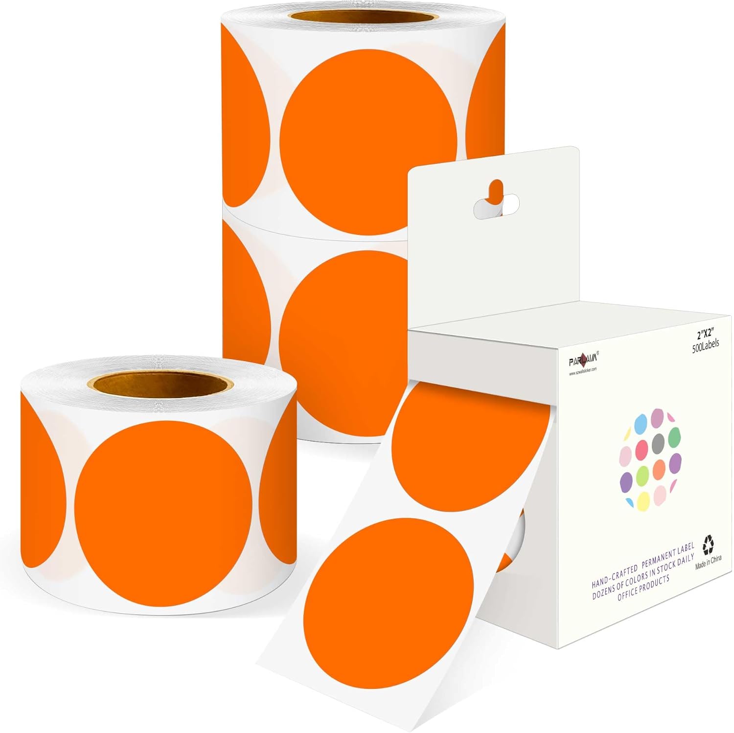 PARLAIM 2 inch Round Color-Code Dot Sticker Labels, 4 Rolls 2000 Adhesive Label Pack in Dispenser Box, Orange