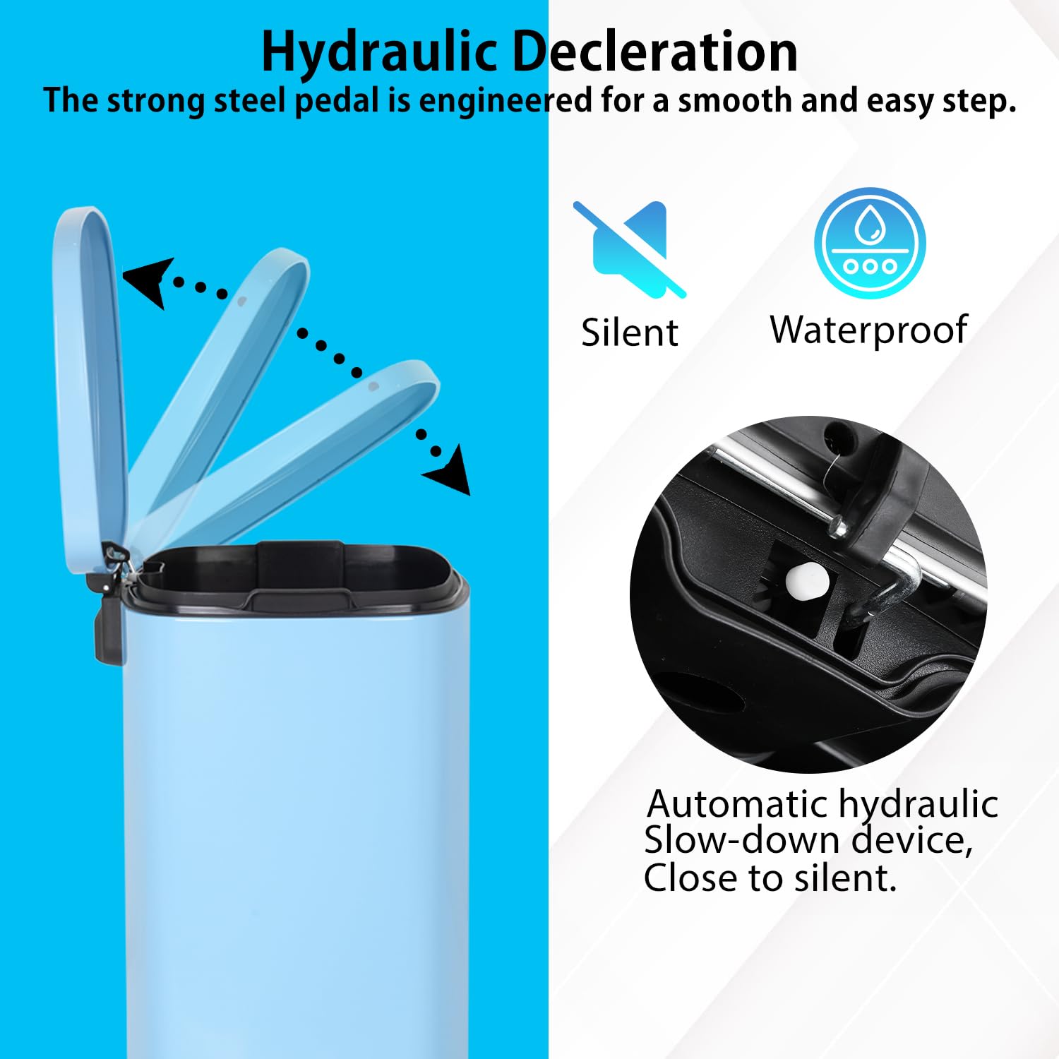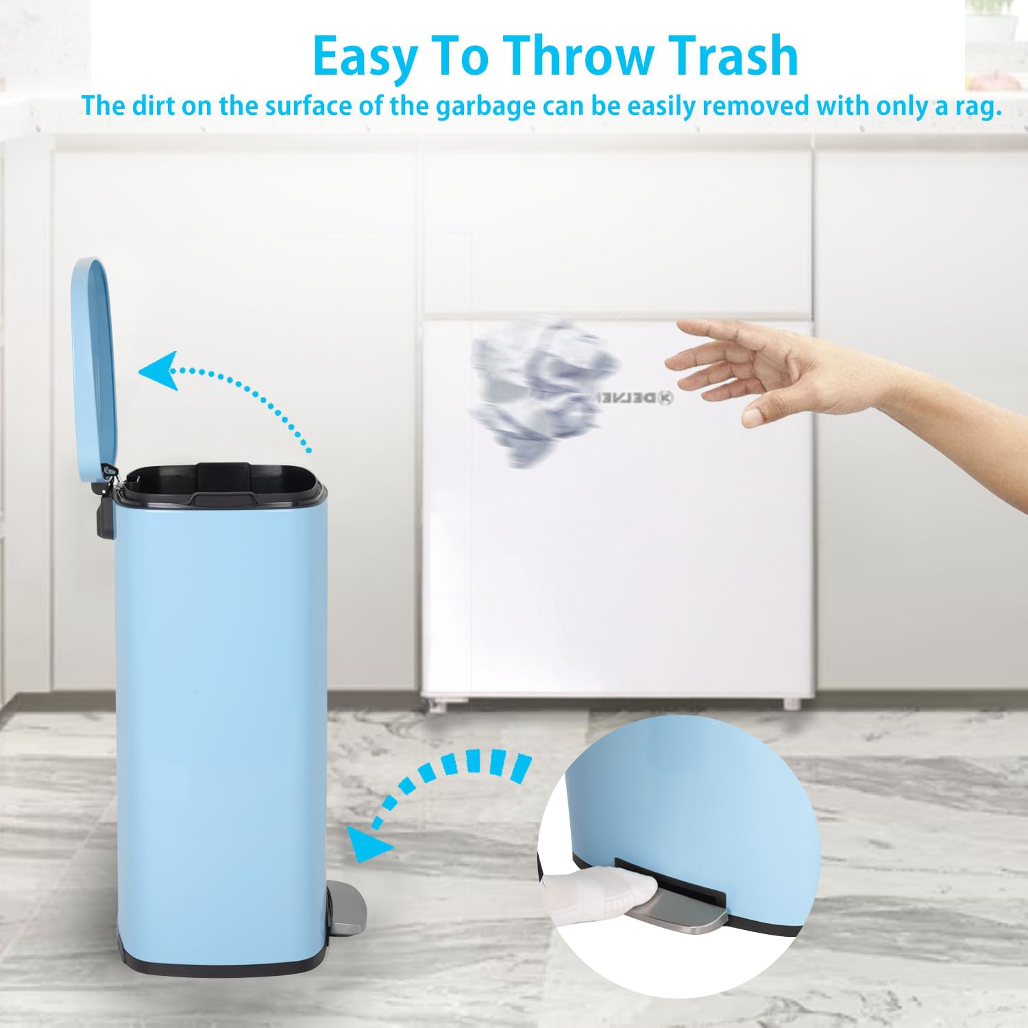 - Hand Free & Odor Control : Trash can with foot pedal allows you to dispose of trash without dirtying your hands or physically touching the trash can lid. The tight-fitting lid reduces odors, keeping your space fresh and the surrounding area smelling fresh and pleasant.
