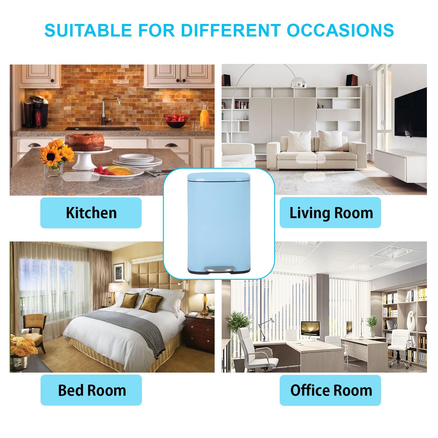 - Versatile Design : This trash bin designed fit for any tight space from under the kitchen counter to a dedicated recycling area.Suitable for various environments from kitchens to offices to outdoor spaces a stainless steel trash can fits seamlessly into any setting while remaining easy to maintain.