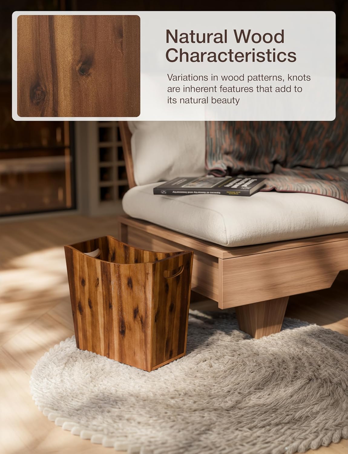 - Crafted from Acacia Wood: Each basket showcases a unique wood pattern, adding a touch of natural beauty to your space. Acacia wood is known for its rich color and fine pattern, making it a stylish addition to any home decor.