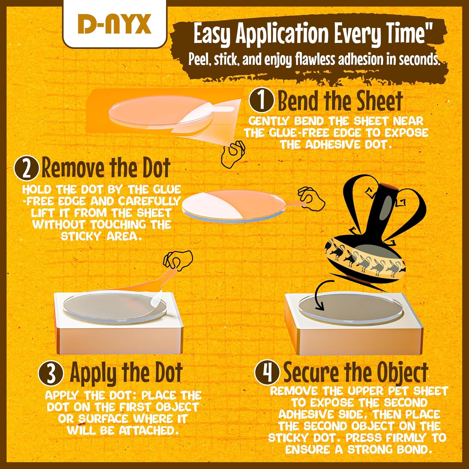 - LONG-LASTING MATERIAL: This double-sided adhesive dot is crafted from a high-viscosity material that offers flexibility, durability, transparency, and reusability. It leaves no adhesive residue upon removal and preserves the integrity of the adherent surface without causing any damage.