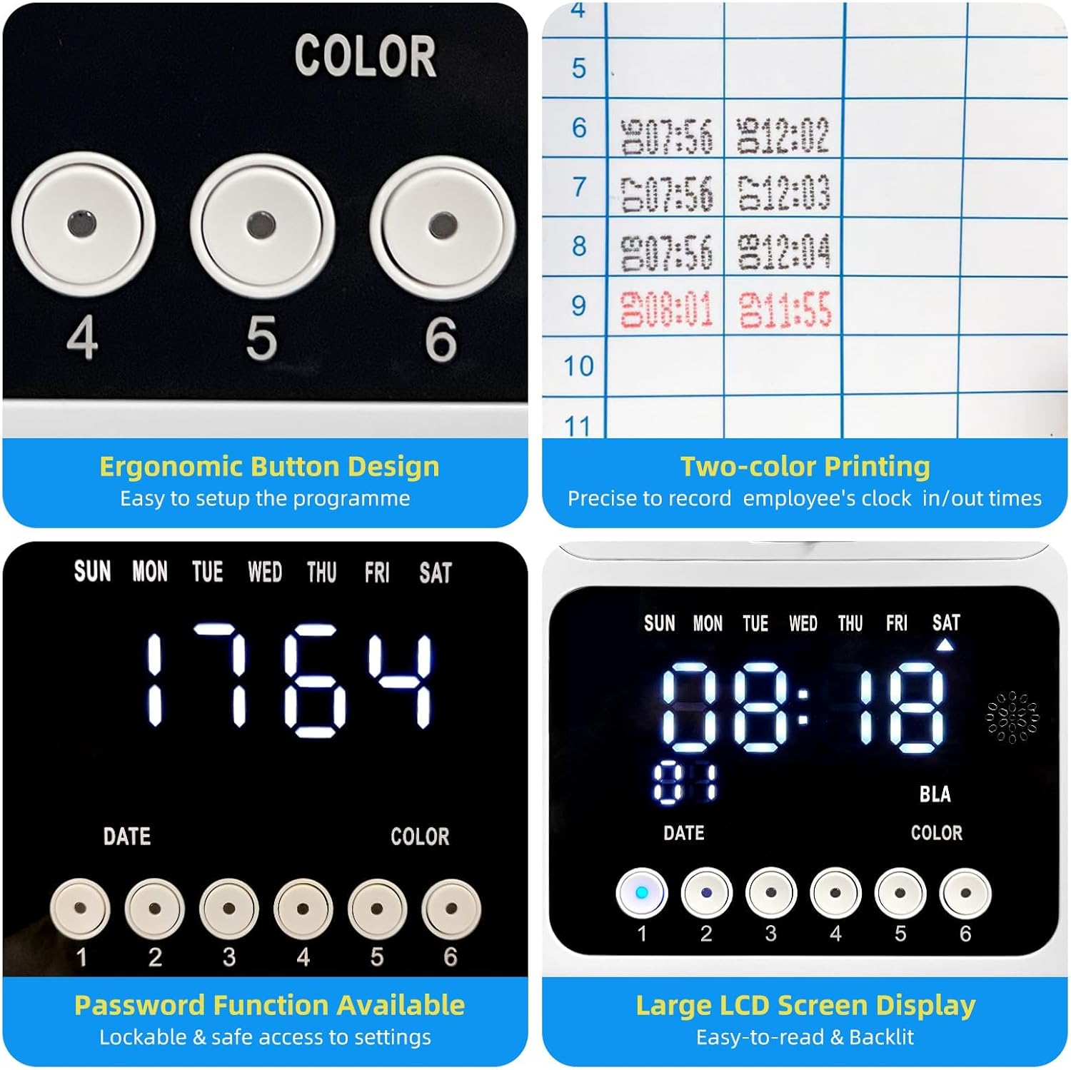 - ๐จ๐ฝ๐ด๐ฟ๐ฎ๐ฑ๐ฒ๐ฑ ๐ฆ๐ฒ๐ฐ๐๐ฟ๐ถ๐๐ - The time clocks for small business can set a password for accessing the setting mode, providing improved safety. The setting buttons are conveniently positioned below the display screen, allowing for easy operation.