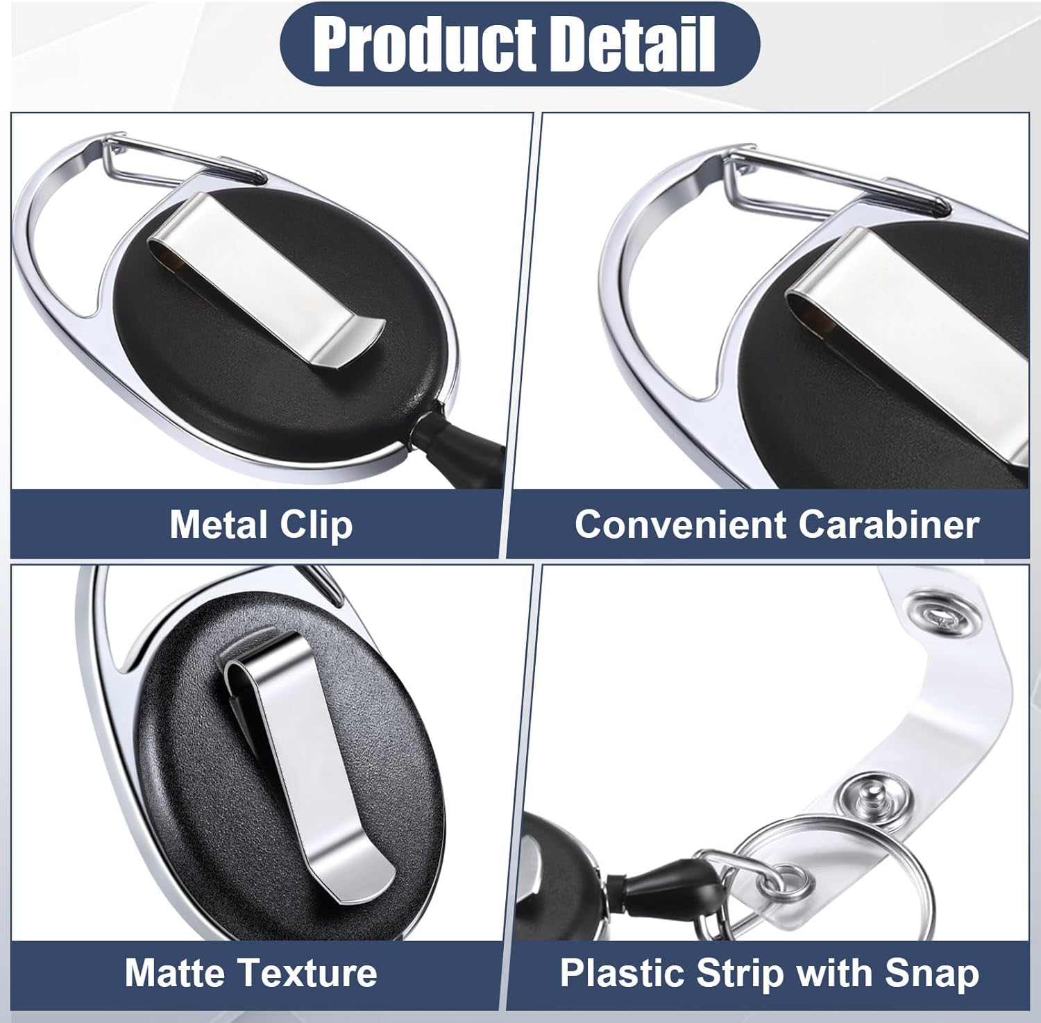 - Durable Material: the badge reel is chromed metal housing with quality plastic covers, matte texture plastic round reel case and fiber cord was made of wear resistant polyester material that is compact and sturdy, retraction force up to 4 oz/ 113 g