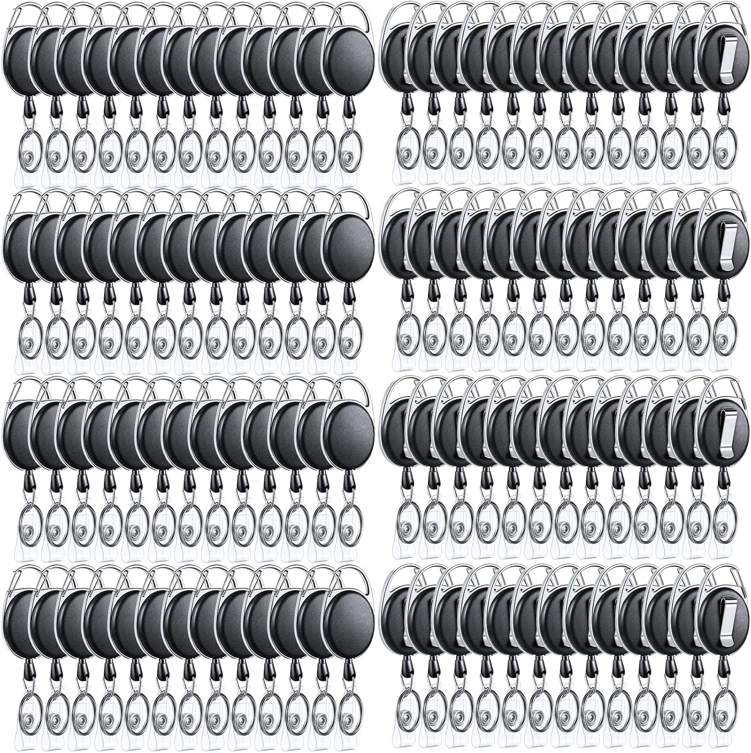 - Package Includes: you will get 90 packs of retractable badge clips, featuring plastic covers, keychain, retractable reel clip for fastening to belt loops, straps, backpacks, bags effortlessly and quickly, allow a quick and easy way to scan or swipe your badge
