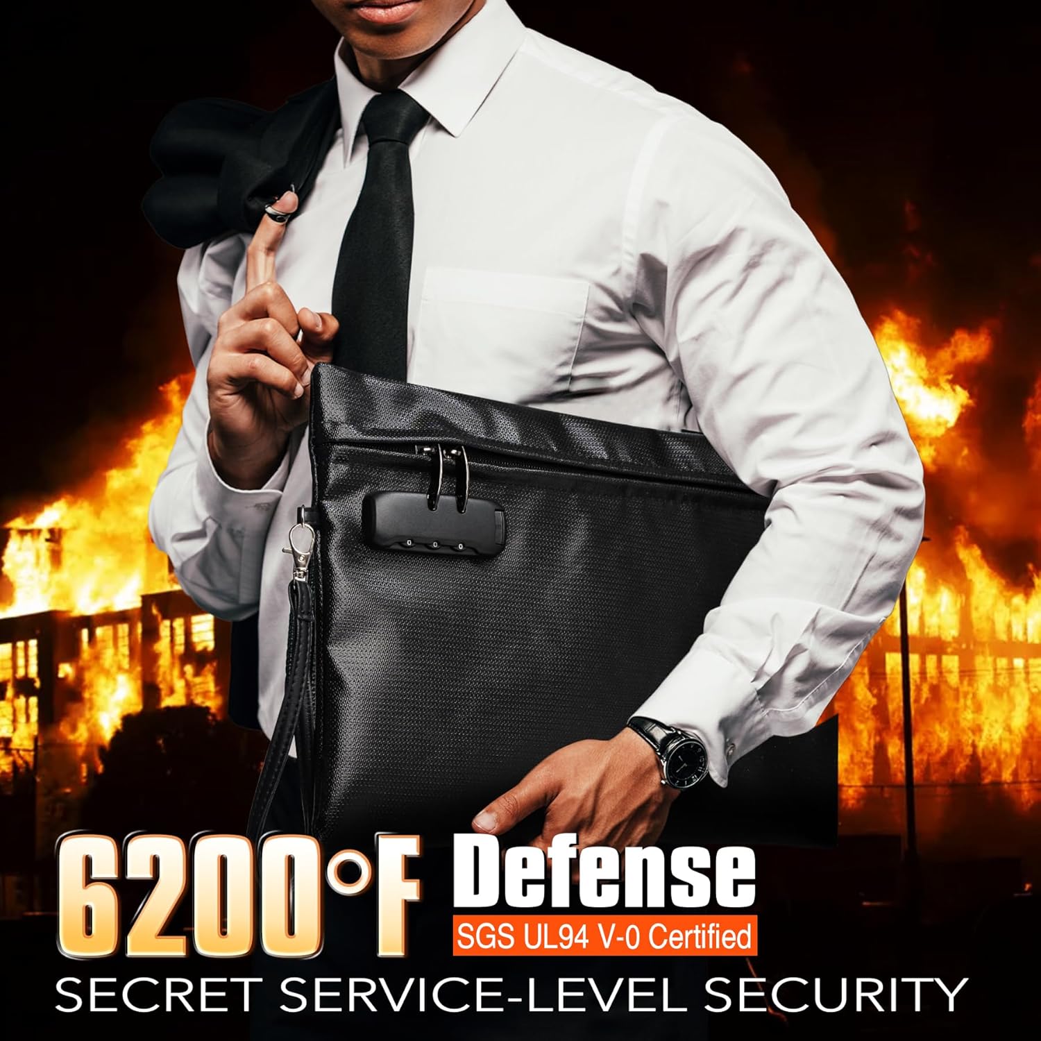 - Certified 6200°F Fire Resistance for Maximum Protection: Engineered to withstand temperatures up to 6200°F, this fireproof document box provides exceptional protection for your important documents. SGS UL94 V-0 certified, it offers the highest level of flame retardancy. Like a secret agent on a high-stakes mission, the fireproof bag stands guard to protect your most valuable assets. For double protection, pair it with a safe to ensure your valuables are fully covered.