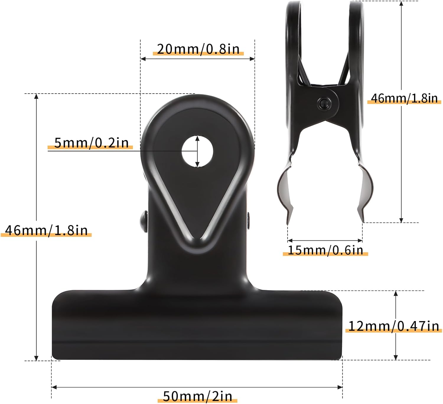 - This clip is 50mm (2 inches) wide and uses a high-quality spring. so it has a very strong bite force and is suitable for sealing kitchen food bags. It can also be used to store and organize office supplies.