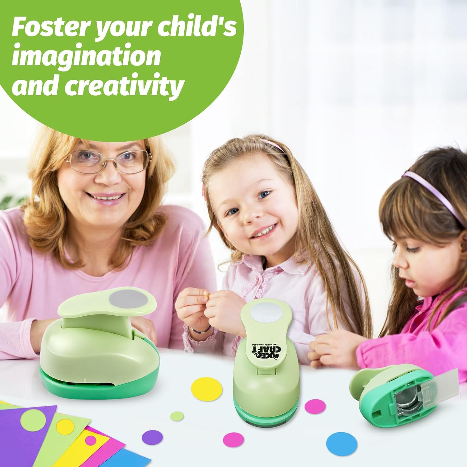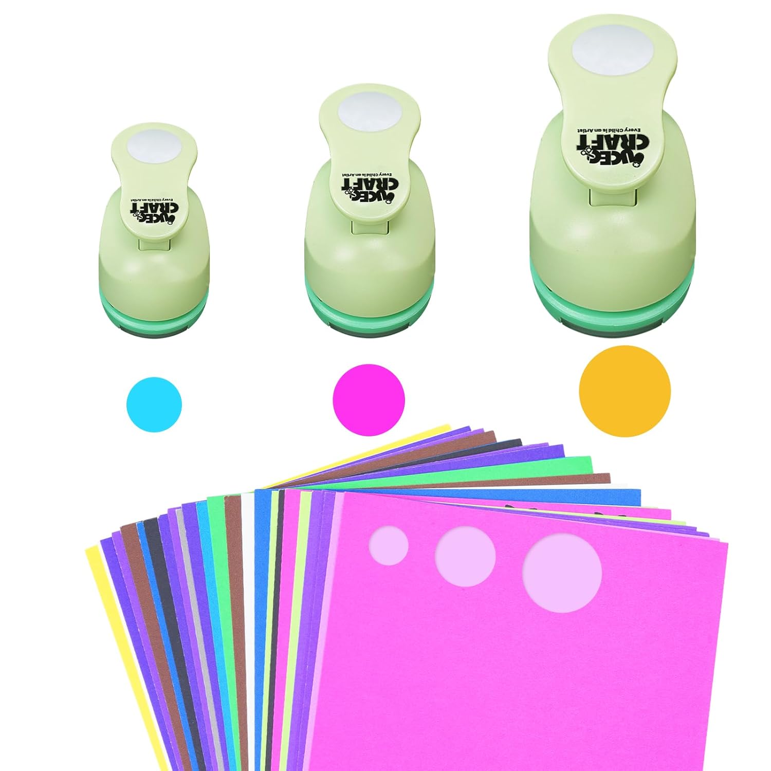 - Circle Paper Punch with Craft Paper: the package contains 3 green circle craft paper punches and 30 pieces of colorful craft sticker papers. The circle punches are available in 3 different sizes, 3/8 inch, 5/8 inch, and 1 inch, a complete set to meet your daily needs