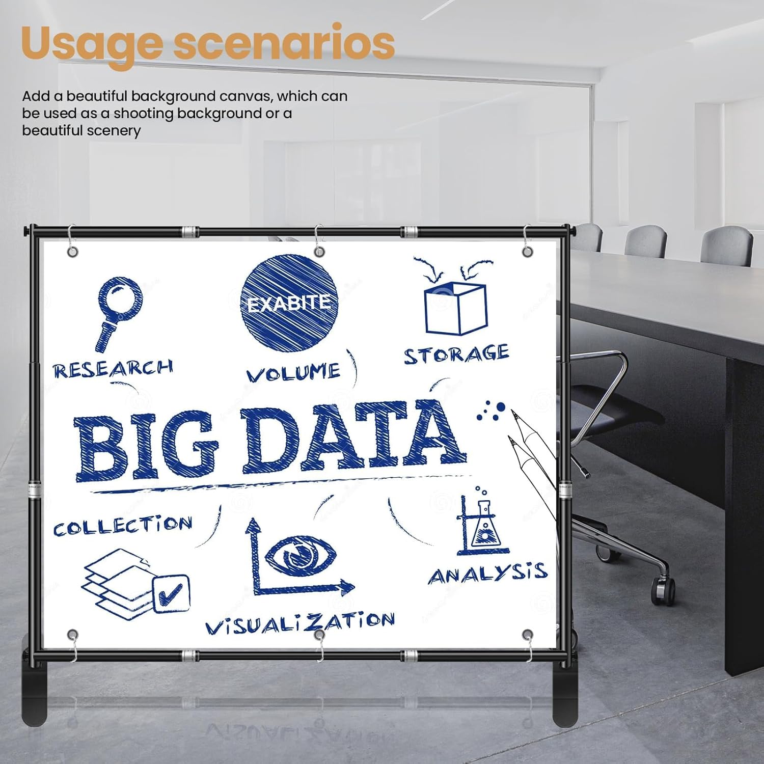- 【Adjustable Frame】: The telescopic banner stand is suitable for multiple size, They are all telescopic and can be infinitely adjusted to match the size you need, Height adjustable (Min 3.4ft - Max 10ft), width adjustable (Min 6.2ft - Max 10ft).