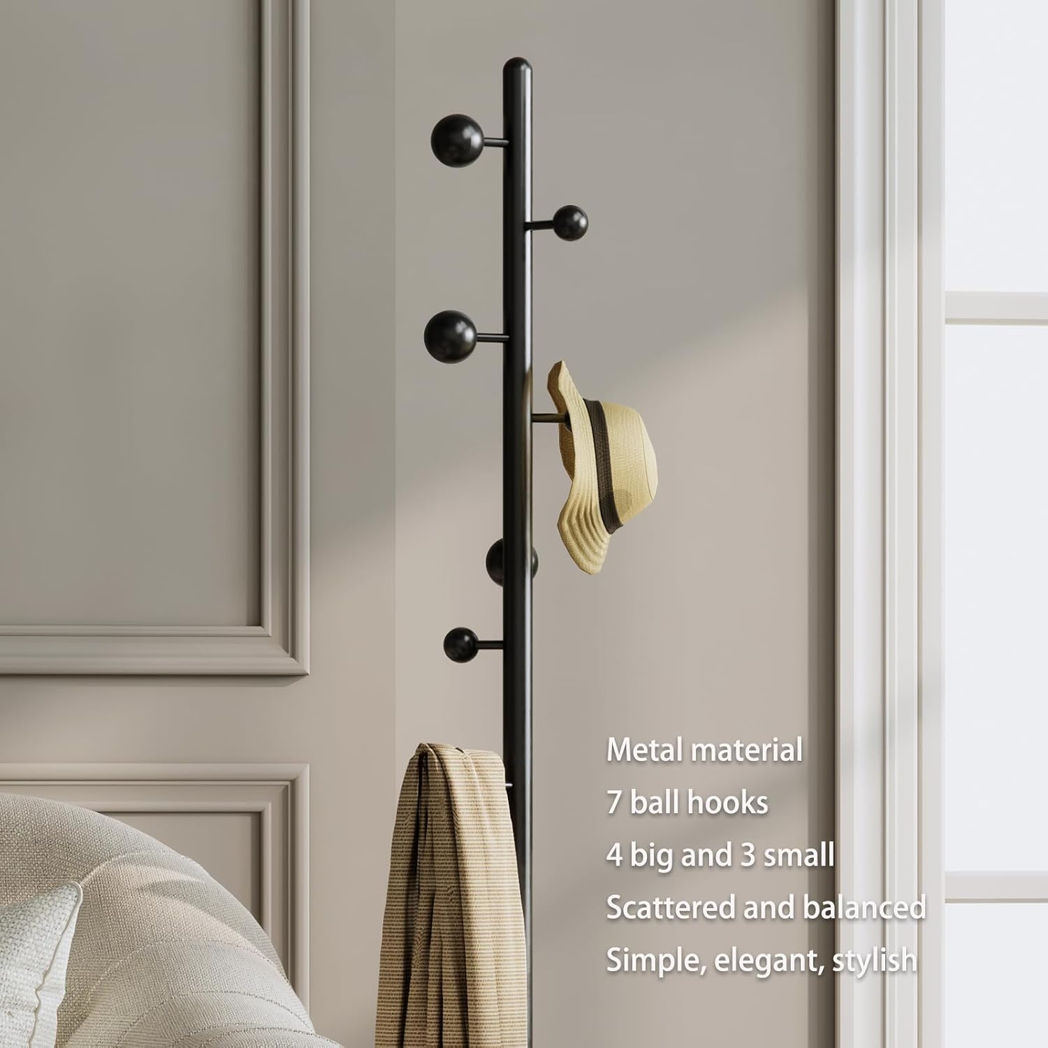 Metal coat rack stand with geometric shape metal base,Heavy duty coat rack freestanding with 7 ball hooks,Coat racks tree hats hanger holder stand for entryway, hallway, bedroom