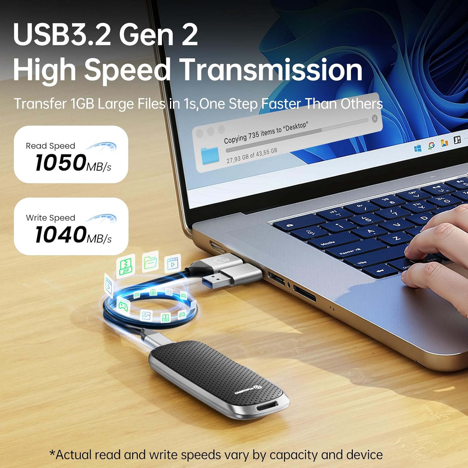 - ULTRAFAST PERFORMANCE, INSTANT TRANSFERS: Equipped with USB 3.2 Gen2 interface, this P10PRO External NVMe SSD 256GB supports up to 10Gbps high speed data transmission, achieving real world read speeds up to 1050MB/s and write speeds up to 1040MB/s. Transfer 1GB of data in just one second, ideal for 4K video editing, game libraries and large business files, dramatically improving work efficiency.