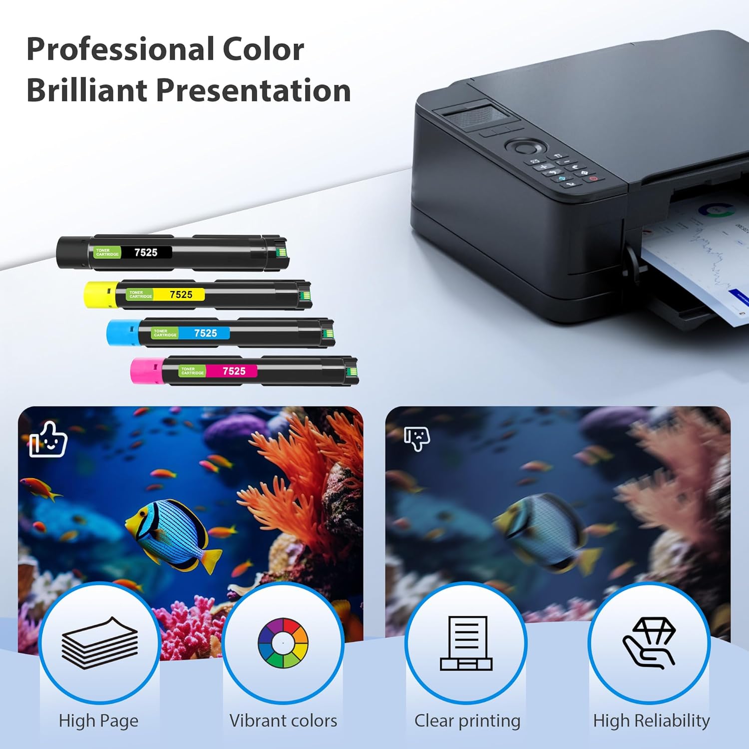 Compatible 7525 Toner Cartridge High Yield Replacement for Xerox Workcentre 7525 7830 7835 7845 7530 7535 7545 7556 7855 7970 7835i 7970i Printer (4-Pack, 006R01513 006R01514 006R01515 006R01516)