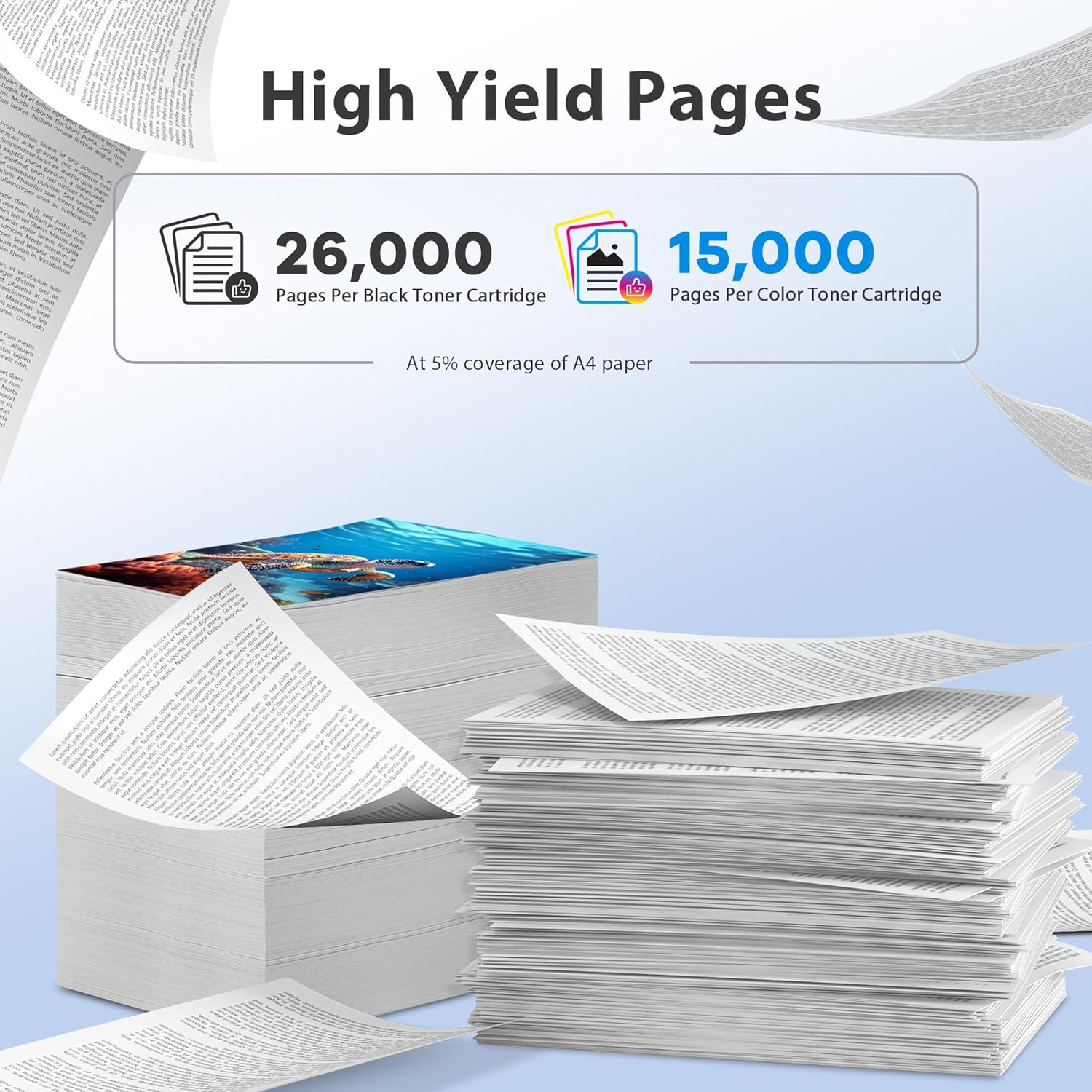 - High Pages Capacity: Up to 26,000 Pages Per Workcentre 7835 Black Toner Cartridge (006R01513), Up to 15,000 Pages Per Workcentre 7855 Color Toner Cartridge (006R01514 006R01515 006R01516) at 5% Coverage (Letter/A4).