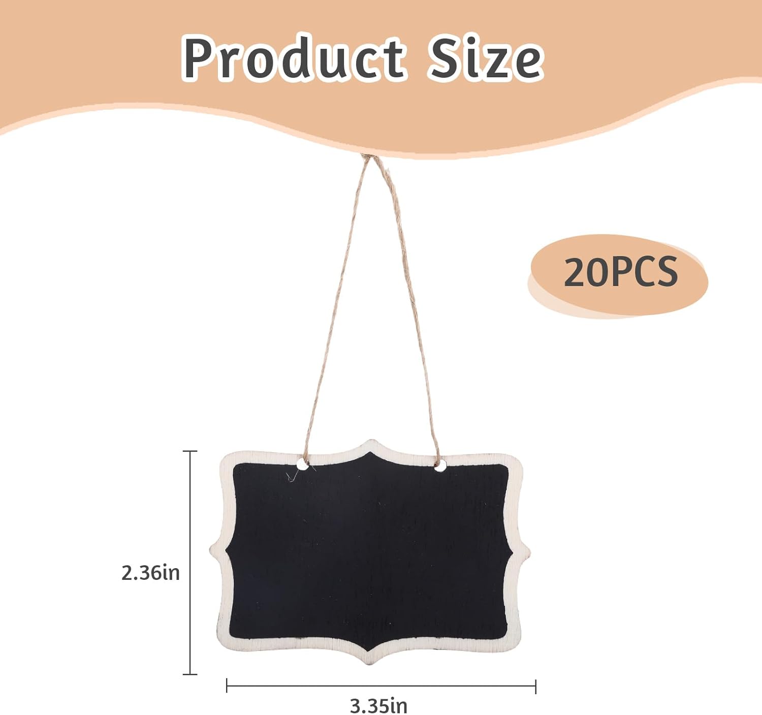 20Pcs Mini Chalkboard Signs,Hanging Small Chalkboard Sign,Chalkboard Tags with String,Double-Sided Hanging Food Labels for Party Buffet,Wooden Erasable Price Message Tags Blackboard
