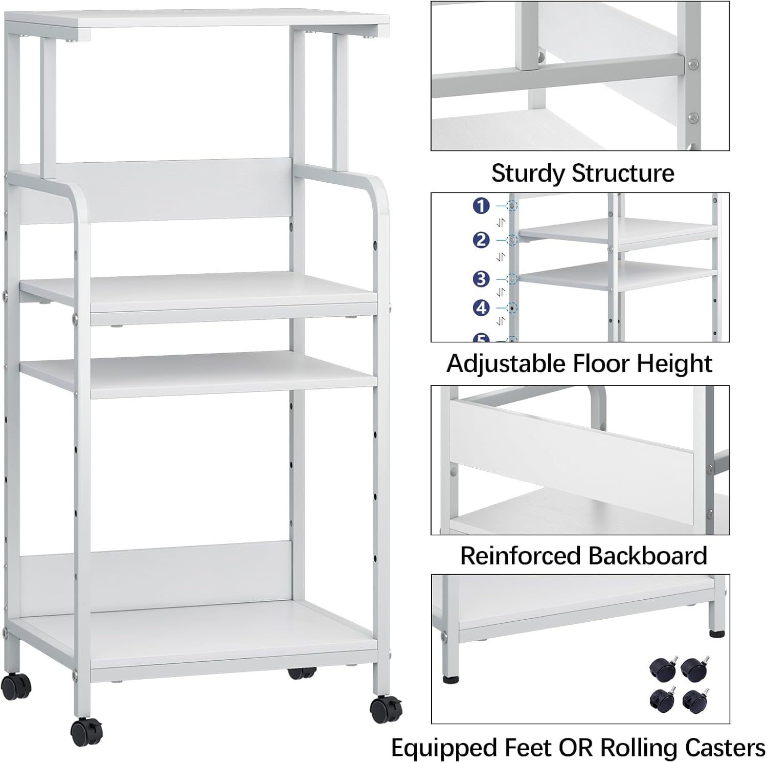 4 Tier Printer Stand with Storage Shelf, Large Tall Printer Cart with Wheels, Mobile Printer Table for Home Office, Adjustable Stands for Printer Heat Press Scanner Fax (White)