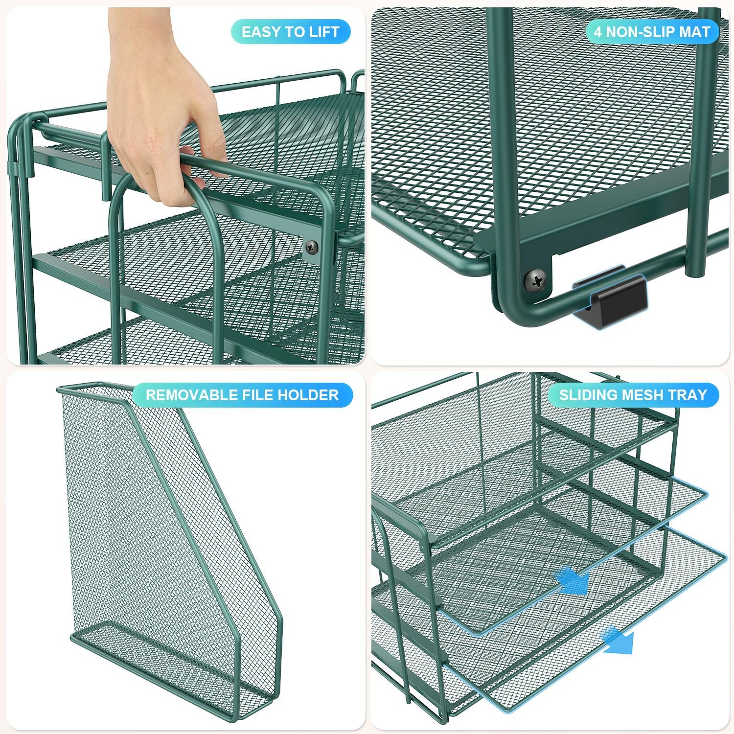 gianotter 4-Tier Paper Organizer With Magazine Holder, Desk Organizers and Accessories, Green Desk Accessories, File Organizer for Office Supplies Storag(Green)