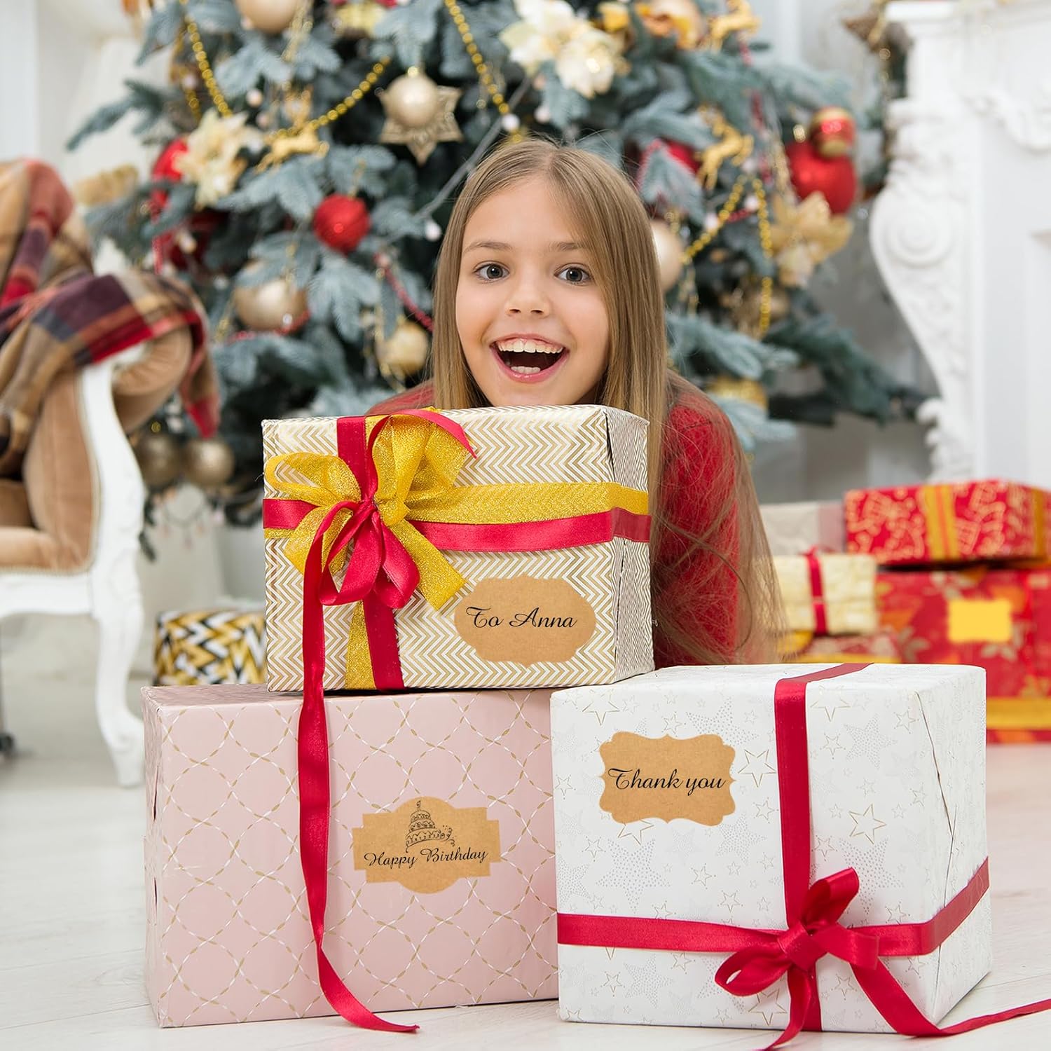 - 【Widely Usage】Just need to peel off the sticker, write words and stick them where you want. With different color paper element, these sticker labels can not only be applied as Christmas gift tags, but also for wedding, birthday, mailing labels, name tags, etc.