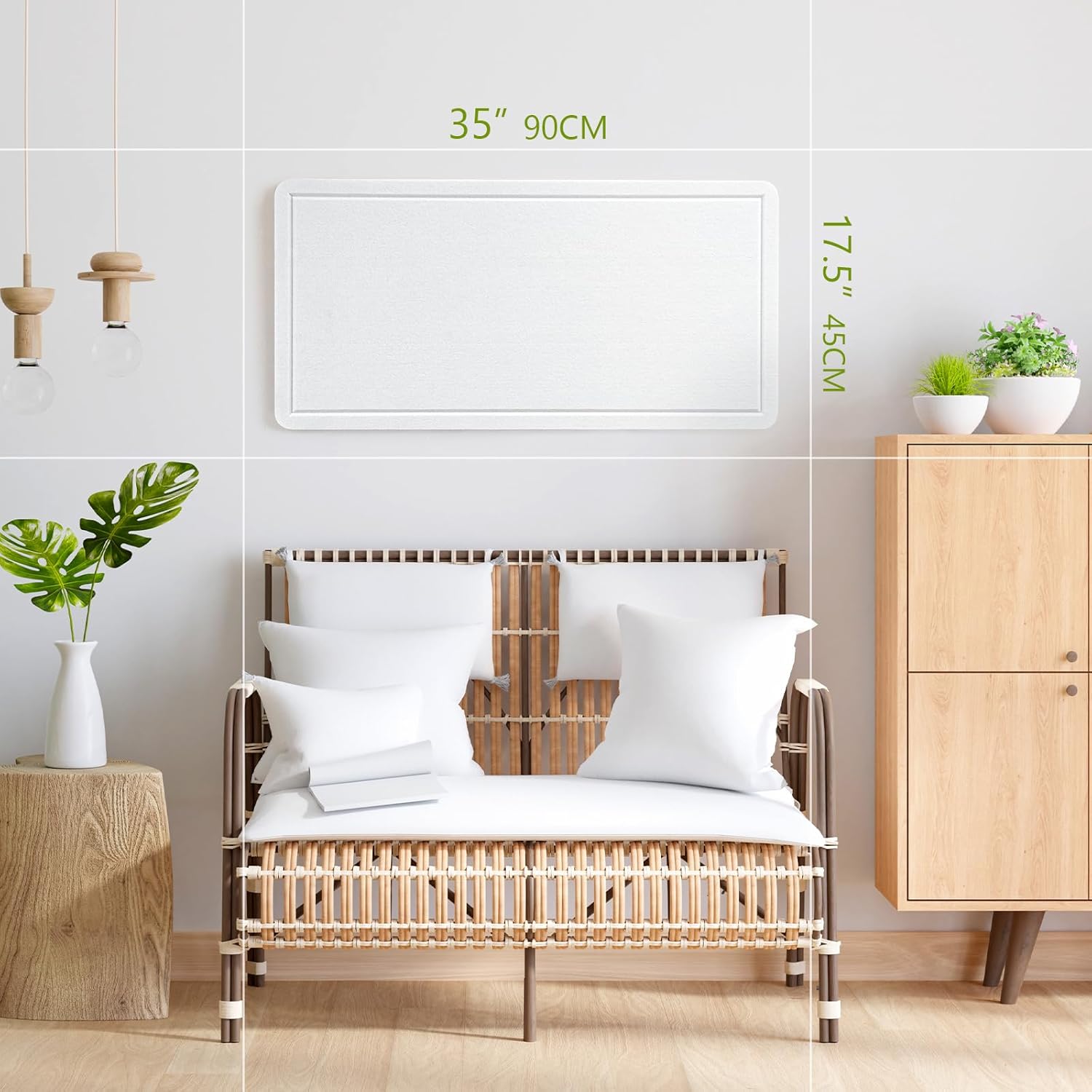 Bulletin Board, 35 x 17 1/2 inches Felt Board - Decorative Pin Board, Cork Board Alternative for Wall, Foldable Picture Board Self-Adhesive Vision Board Prayer Board with 20 Pushpins - White