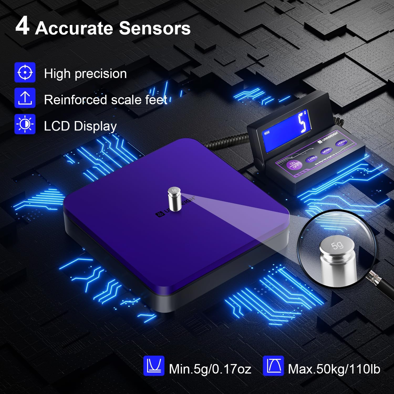 - Large Capacity & Multi-Functional: 110lb large capacity with 5 units (lb:oz/lb/oz/g/kg), perfect for varied shipping needs. A must-have shipping scale for packages and logistics;