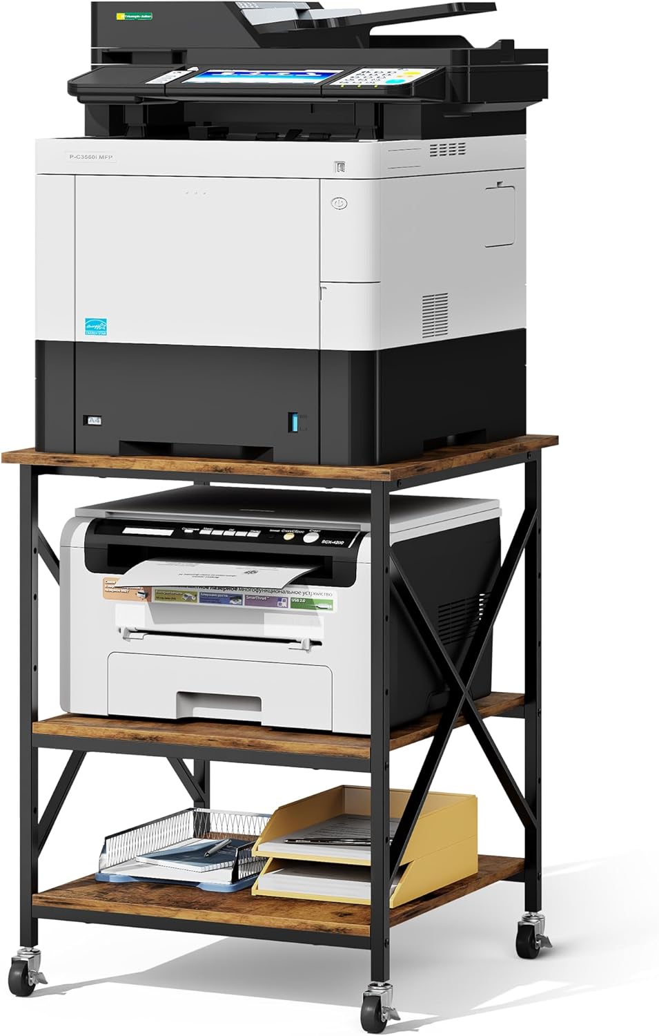 - 【Premium Quality】 Strong steel frames and thick wooden panels provide strong support for storage, durable and not easy to deform. This printer cart with wheels can hold up to 100 pounds. Made of CARB P2 class manufactured wood, with fine surface, waterproof and easy to clean.