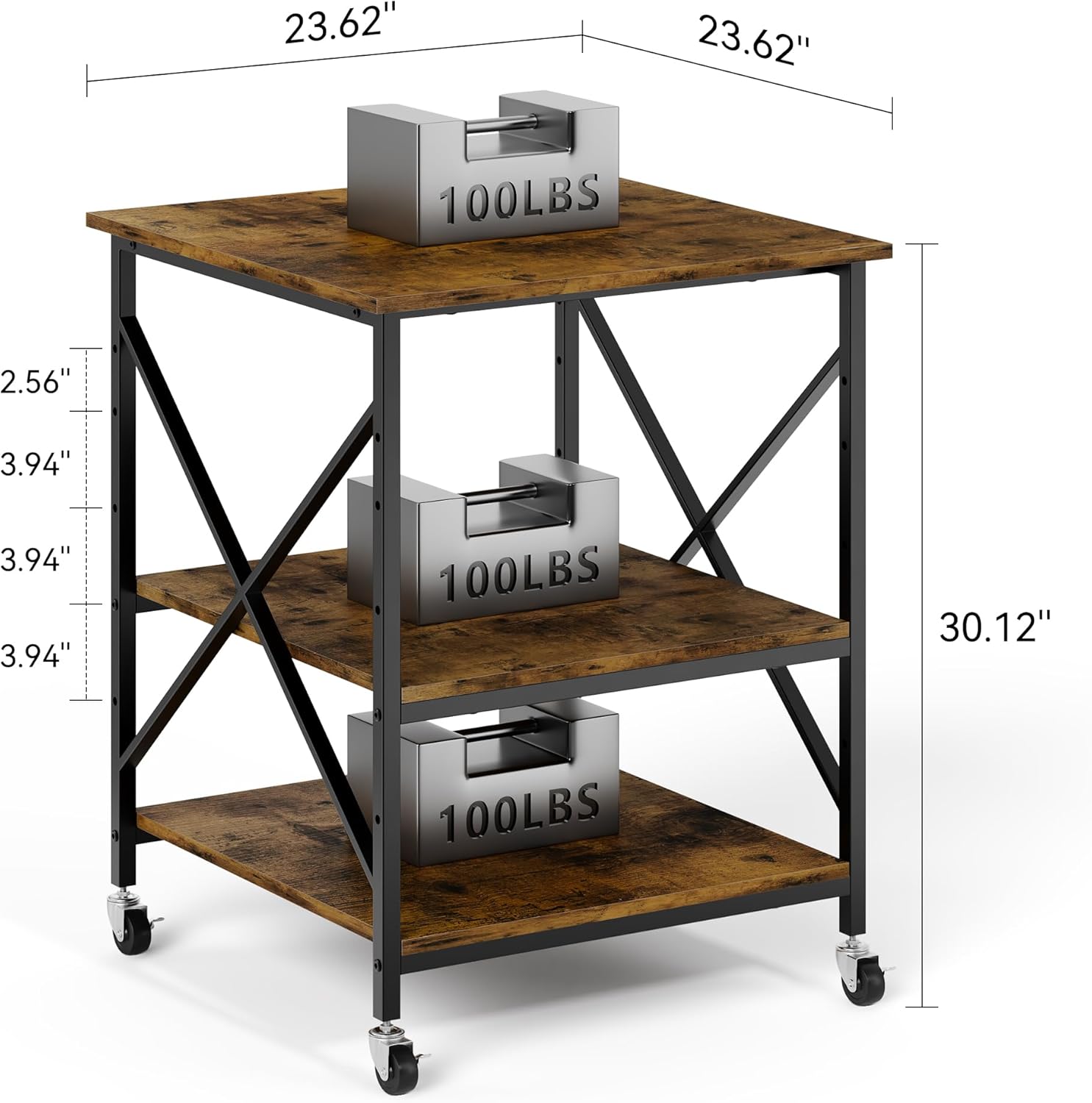 Warmiehomy 24"x24"x30" Large Printer Stand with Storage, 3 Tier Rolling Printer Cart Table, Mini Fridge Stand with Wheels, Use for 3D Laser Printer Home Office, Rustic Brown