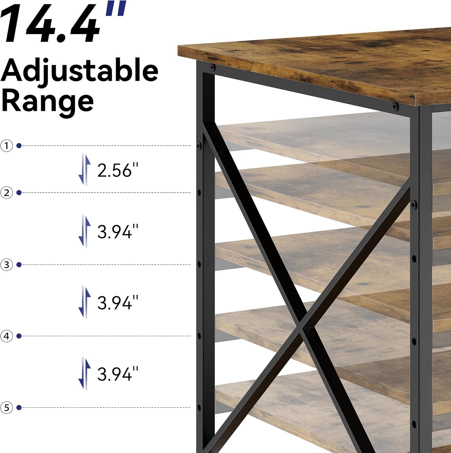 - 【14.4" Adjustable Height Range】 With 5 gears totaling 14.4 inches adjustable height range, the middle shelf of the large printer table can be customized by you to accommodate differently sized items. Experience the flexibility and versatility of customizable storage options with this innovative printer shelf.