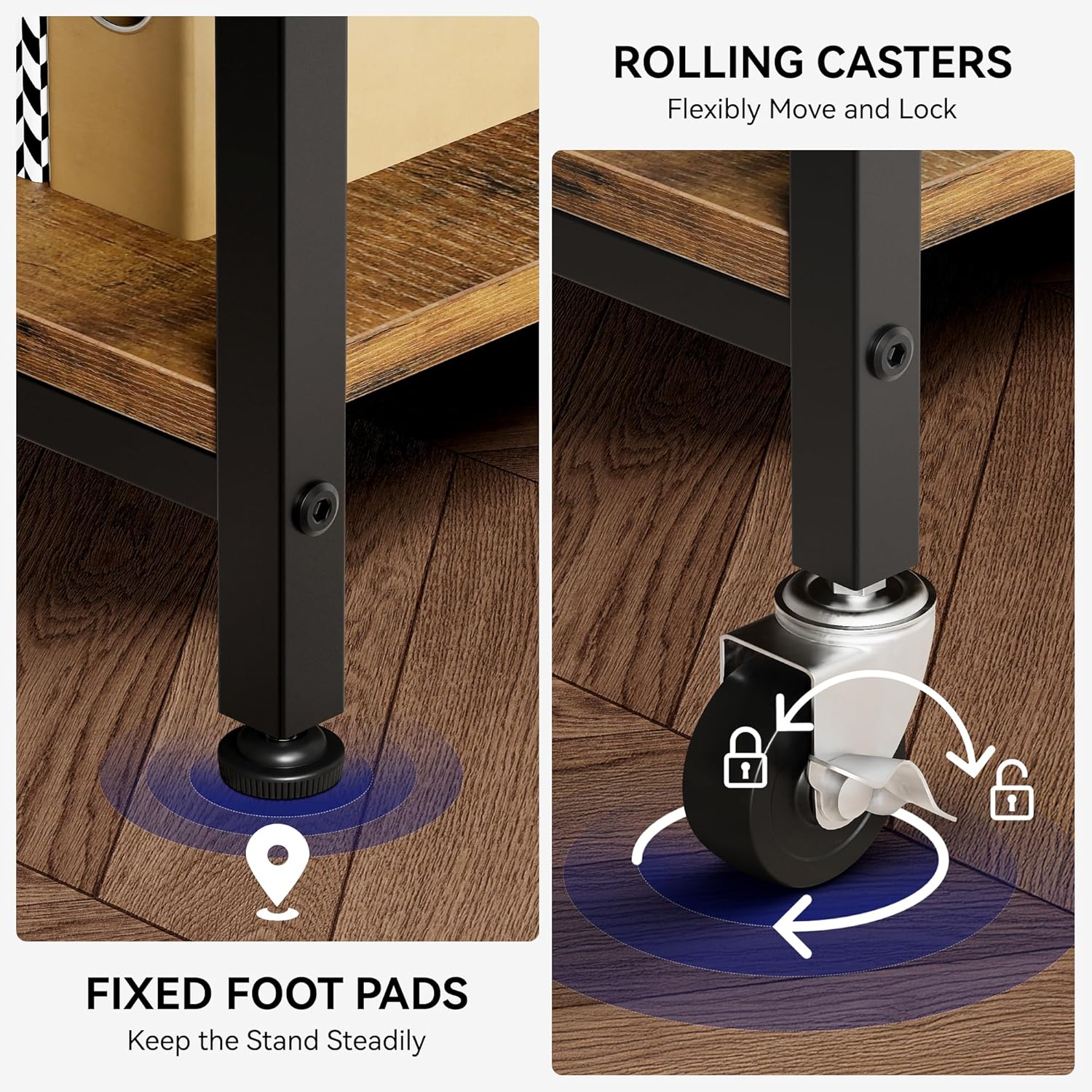 - 【Adjustable Feet and Rolling Casters Both Included】 Come with fixed foot pads and rolling casters, you can choose between full stability or mobility. 2 of the 4 wheels are lockable to keep the printer cart in position. The foot pads can be fine-tuned to prevent wobbling on uneven surfaces, guaranteeing a stable and secure stand.