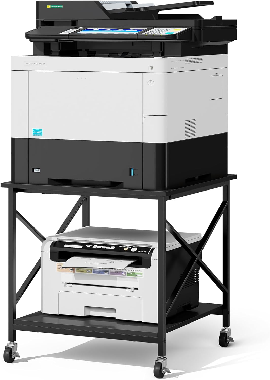 - 【Oversized Countertops Storage Space】2 tier printer stand with large storage space of 23.62''L x 23.62"W x 23.62"H to accommodate kinds of office items. This 24 inch wide office stand can be used to hold printers, scanners, fax machines as well as copy paper, folders, books, letters, documents, etc. It is an ideal printer table for home office.