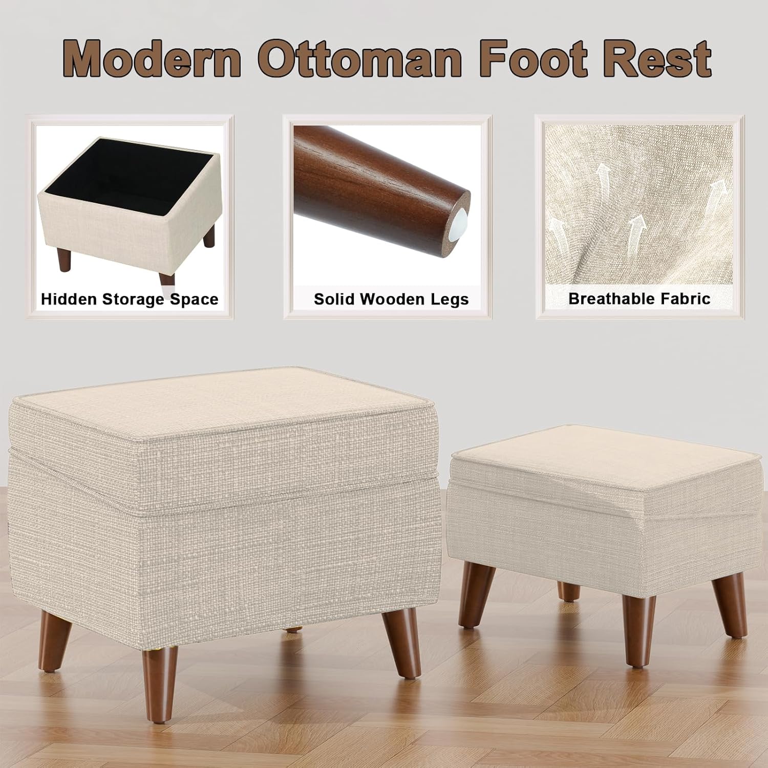 Foot Rests with Adjustable Cover, BOGO, Storage Ottoman Dorm, Footstool & Sitting Stool, Ottoman Foot Stool Set for Living Room, Bedroom, Dorm, Beige
