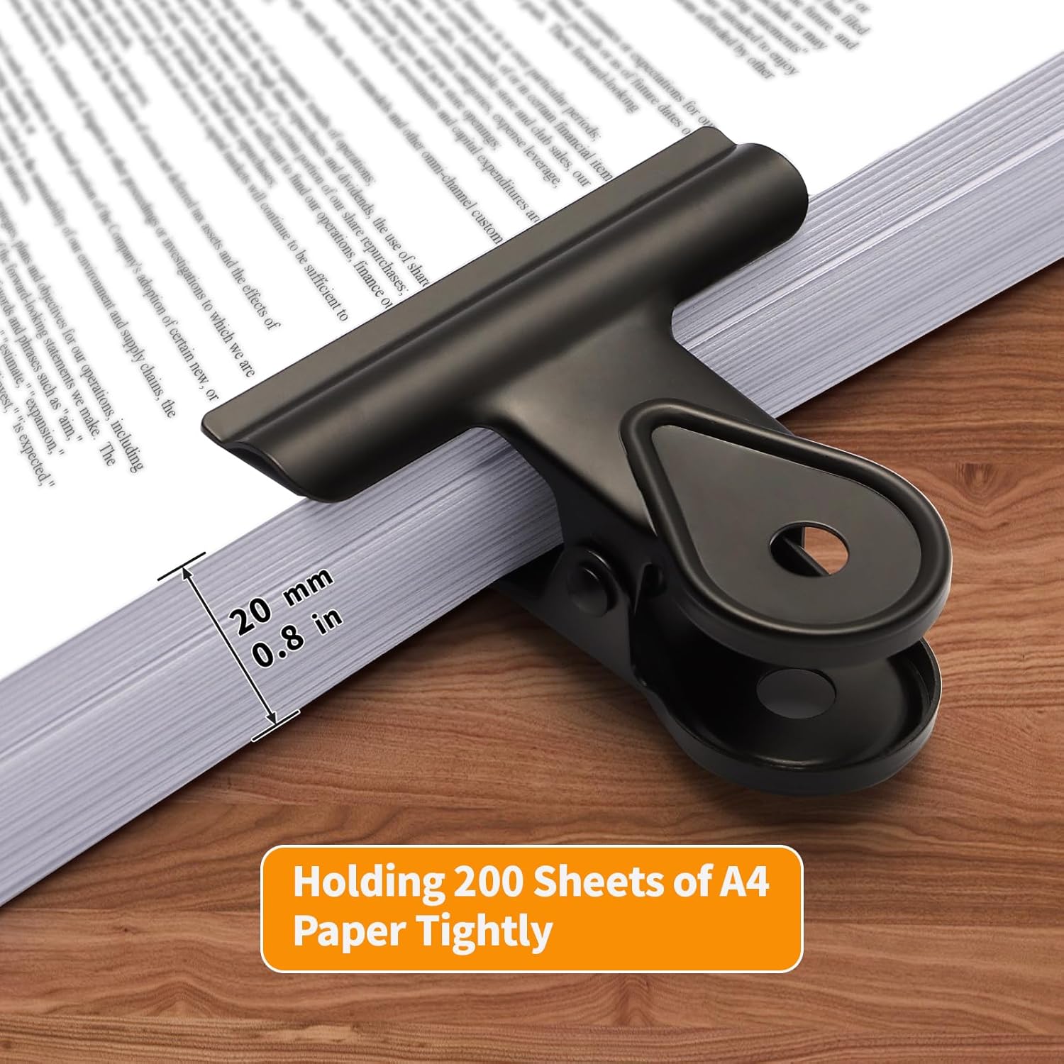 SIAMESE Bulldog Clips, 4 Pcs Binder Clips for Office & Kitchen, Multi-Purpose Binder and Food Bag Clamps for Sealing, Storage, Hanging (Black)