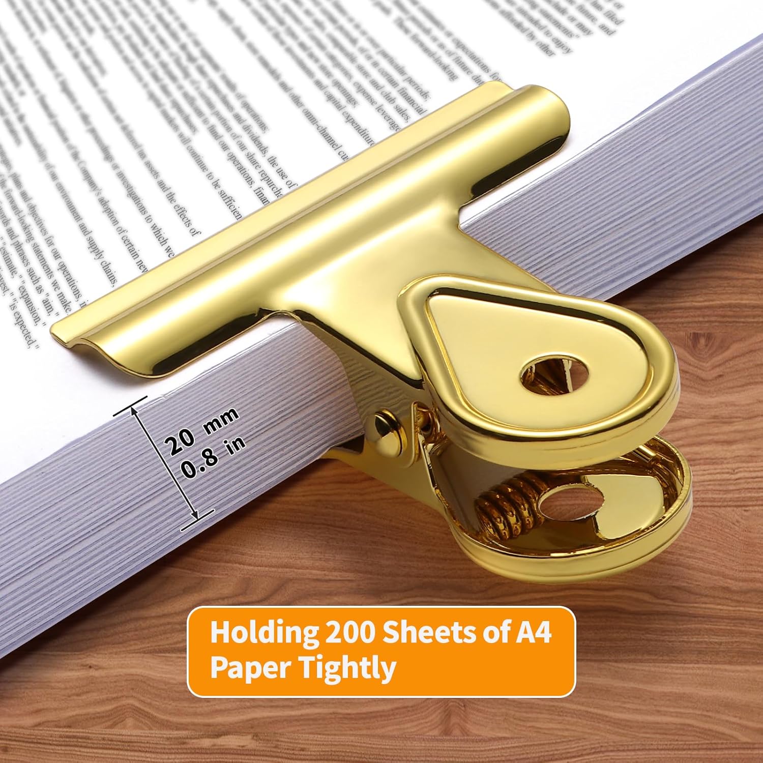 SIAMESE Bulldog Clips, 4 Pcs Binder Clips for Office & Kitchen, Multi-Purpose Binder and Food Bag Clamps for Sealing, Storage, Hanging (Gold)