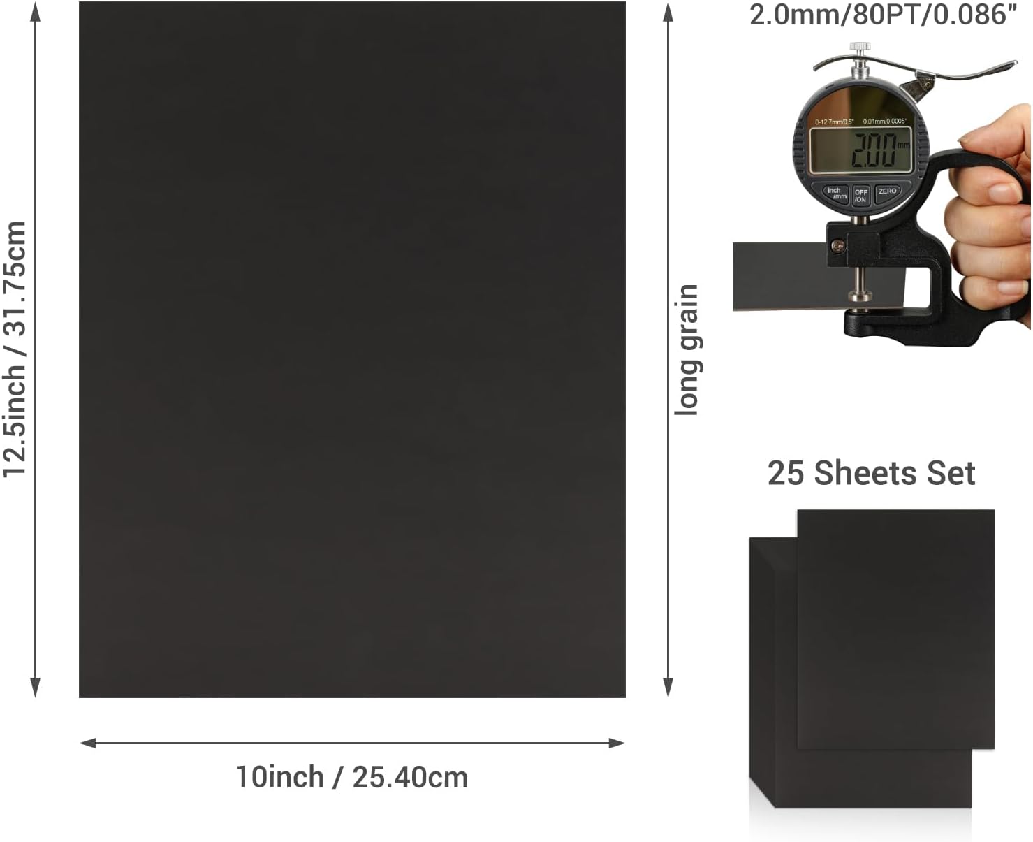25 Pcs Book Board, Binder Board, Cover Board, Heavy Duty Chipboard for Book Binding, DIY Cardboard (Black, 10 x 12.5 Inch 80PT)