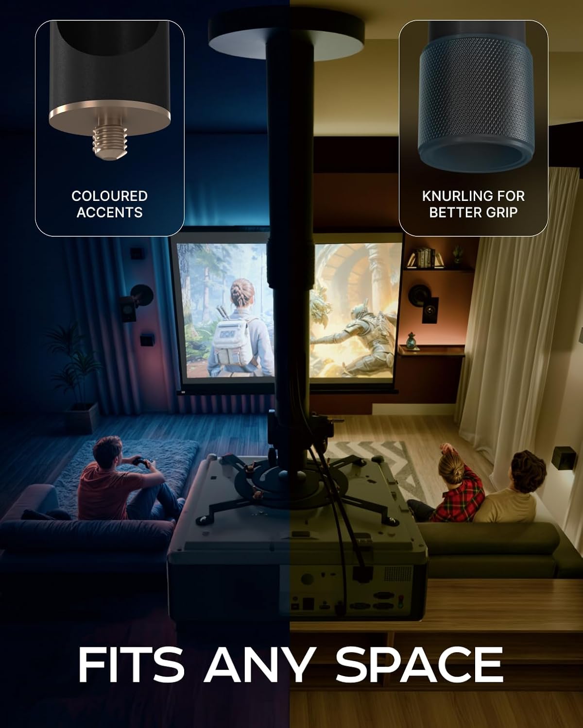 - ADJUSTABLE CEILING or WALL MOUNT: Featuring a telescoping extendable arm, the adjustable projector mount allows height from 13.8" to 21", making it suitable for any setup, providing flexibility and stability for your projection needs.