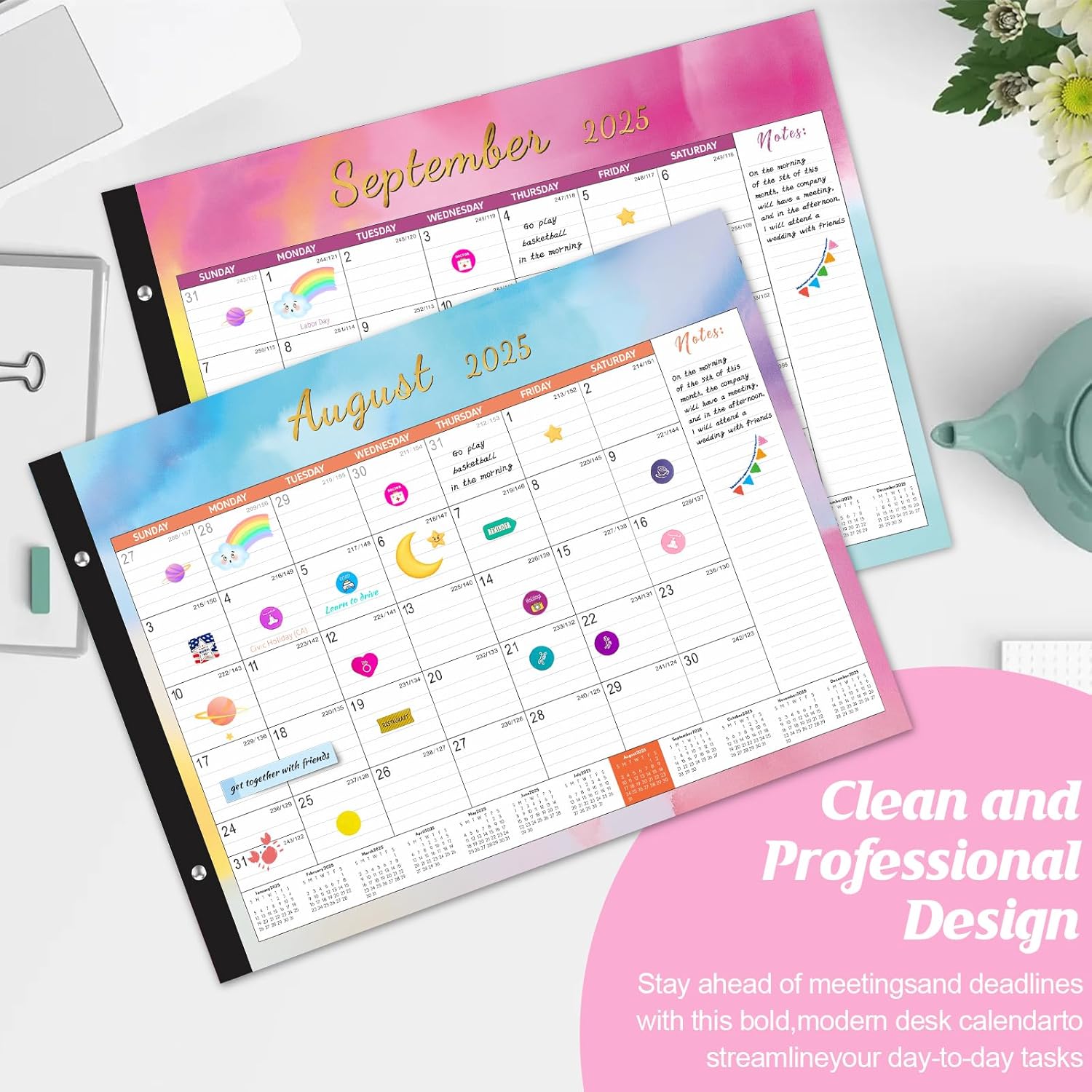 - 📔【Desk Calendar 2025-2026】18 monthly yearly desk calendar with 6 funny stickers, covering july 2025 to december 2026. (22" x 17") Each page has a monthly overview with mini-month references to help you plan and organize your school, office and home work efficiently.