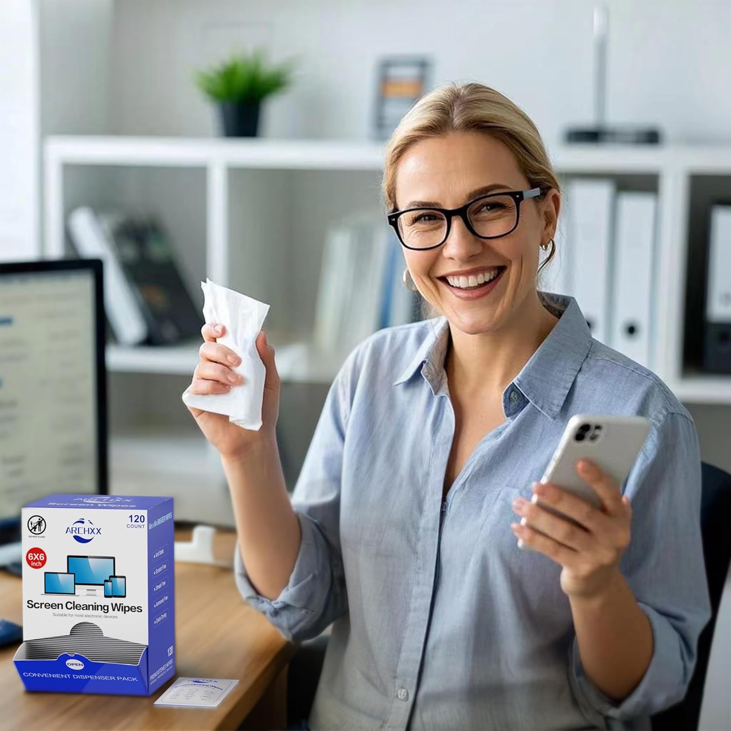 - 【120 Count Bigger Size】Archxx Screen Cleaner,6"x6" cleaning wipes are ideal size as computer screen cleaner wipes, laptop screen cleaner, tablet,phone screen cleaner wipes, TV screen cleaner wipes, OLED screen cleaner, LCD screen cleaner, and many more, for better usage, please read the TIPS below in the product description.