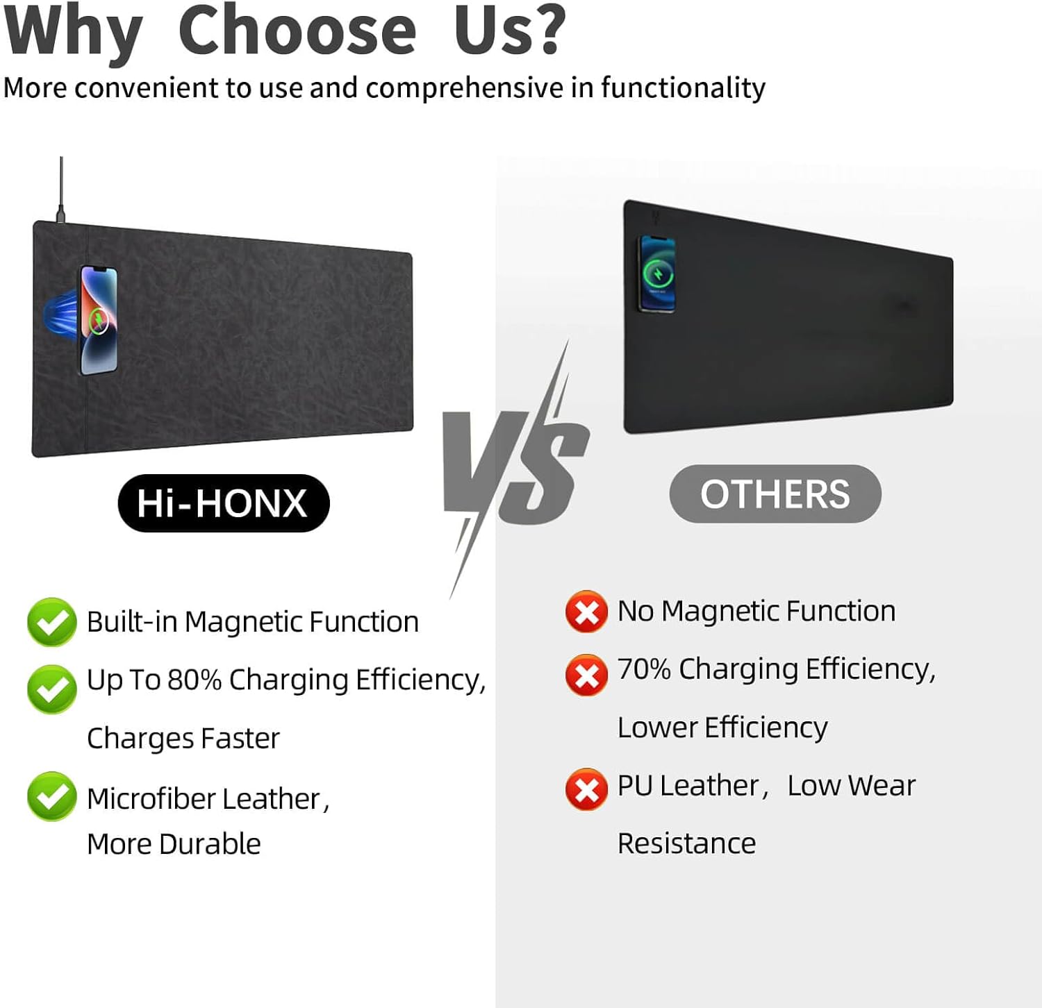 - Super Smooth Surface: Our wireless charging desk pad is crafted with premium microfiber leather fabric, offering a surface with an unparalleled smooth touch, enhancing the precision of your mouse control and elevating your user experience