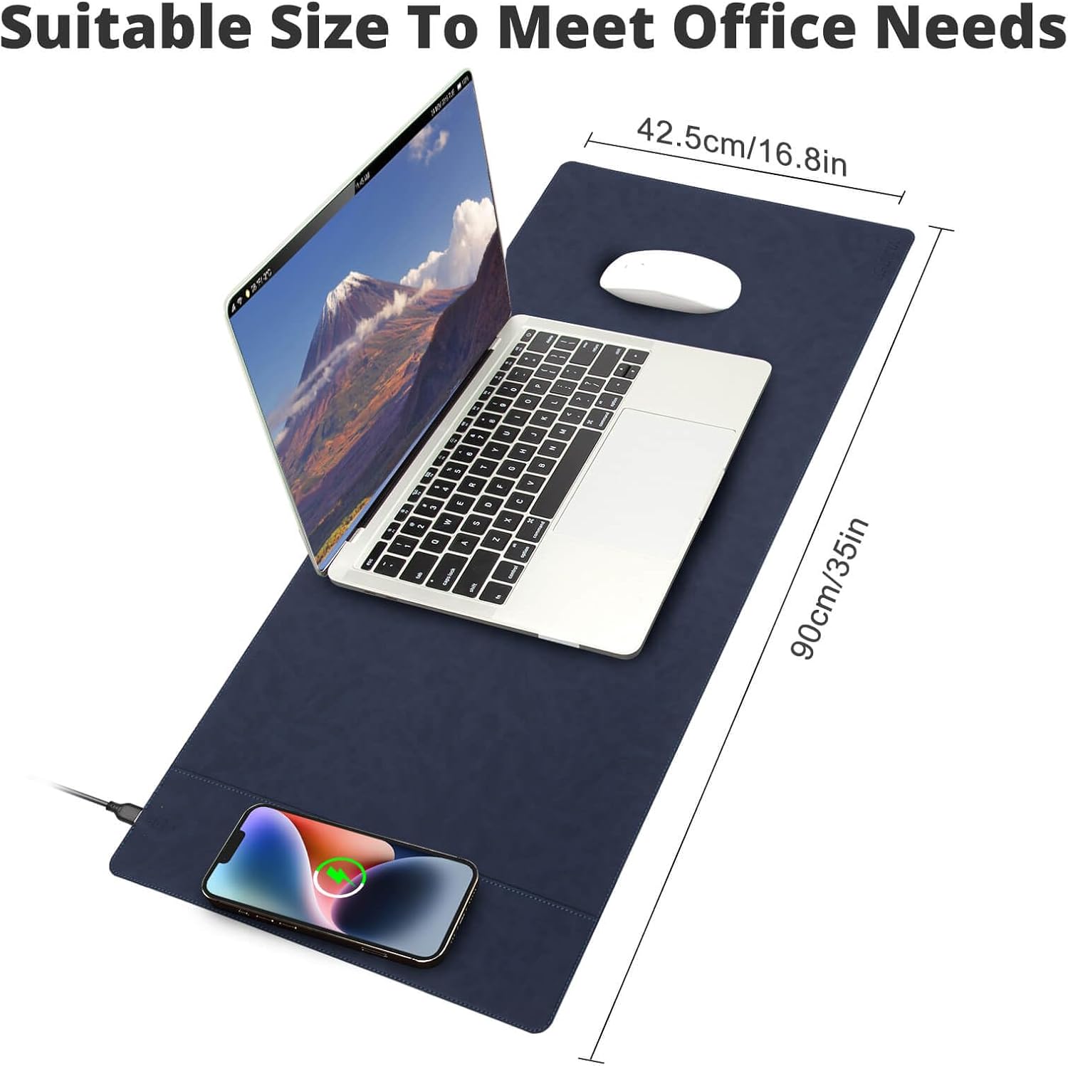 Magnetic 15W Fast Wireless Charging Desk Pad, 35.4"x16.8" Extra Large Mouse Pad, Microfiber Leather Office Desk Mat, Waterproof and Scratch-Resistant Mouse Mat for Office and Home Use,Blue