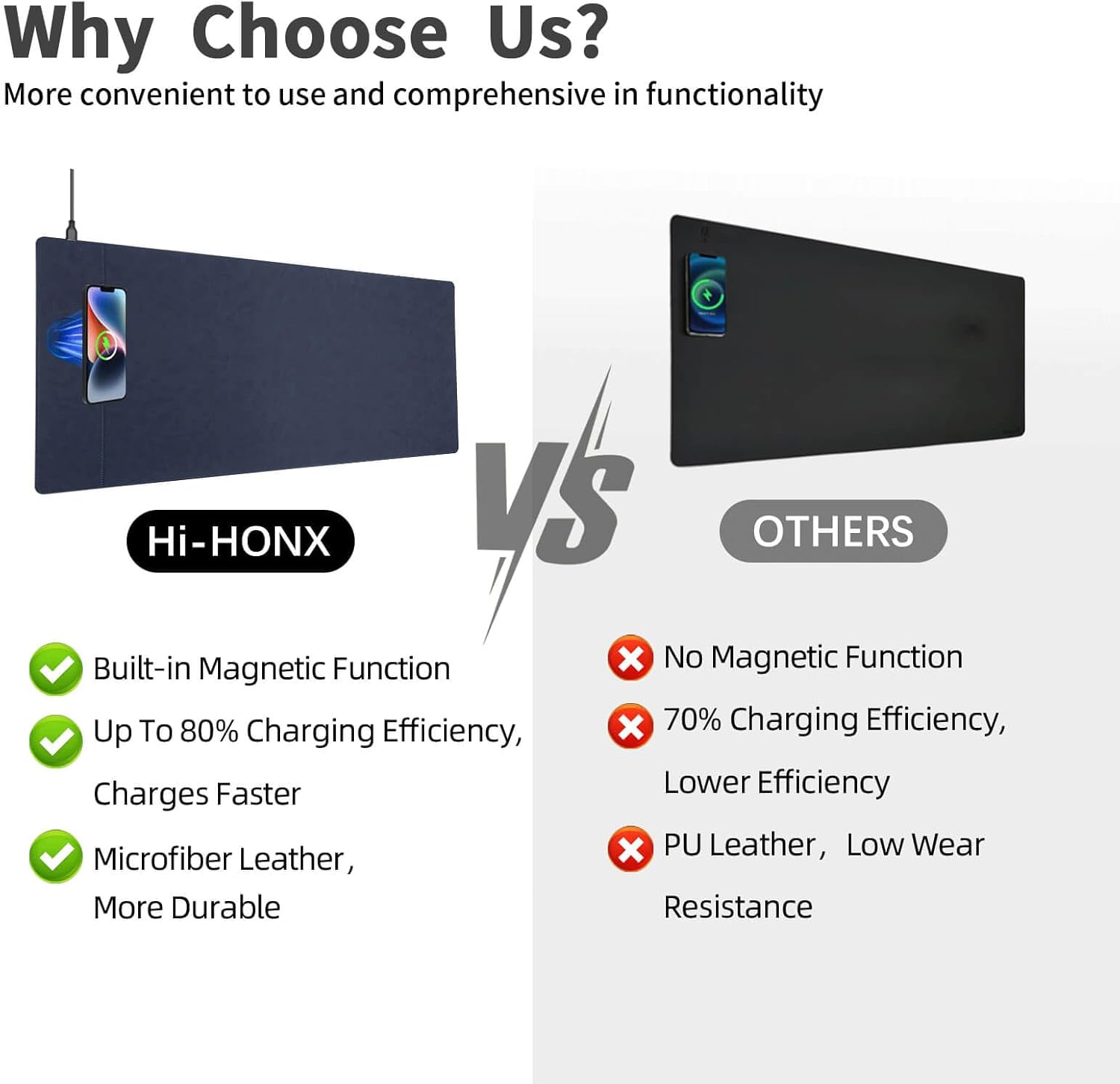 - Super Smooth Surface: Our wireless charging desk pad is crafted with premium microfiber leather fabric, offering a surface with an unparalleled smooth touch, enhancing the precision of your mouse control and elevating your user experience