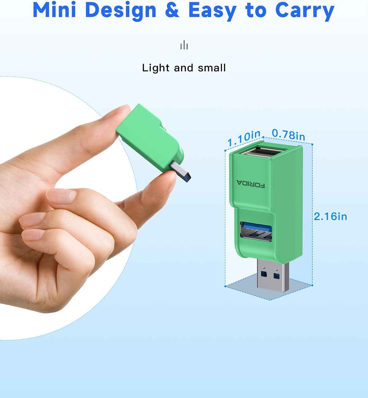 FORIDA 3 Ports USB 3.0 Adapter, USB Hub with 1 USB 3.0 and 2 USB 2.0 Ports, Portable USB Port Splitter for Keyboard, Mobile Hard Disk, U Disk, Camera, Mouse, etc (Green)
