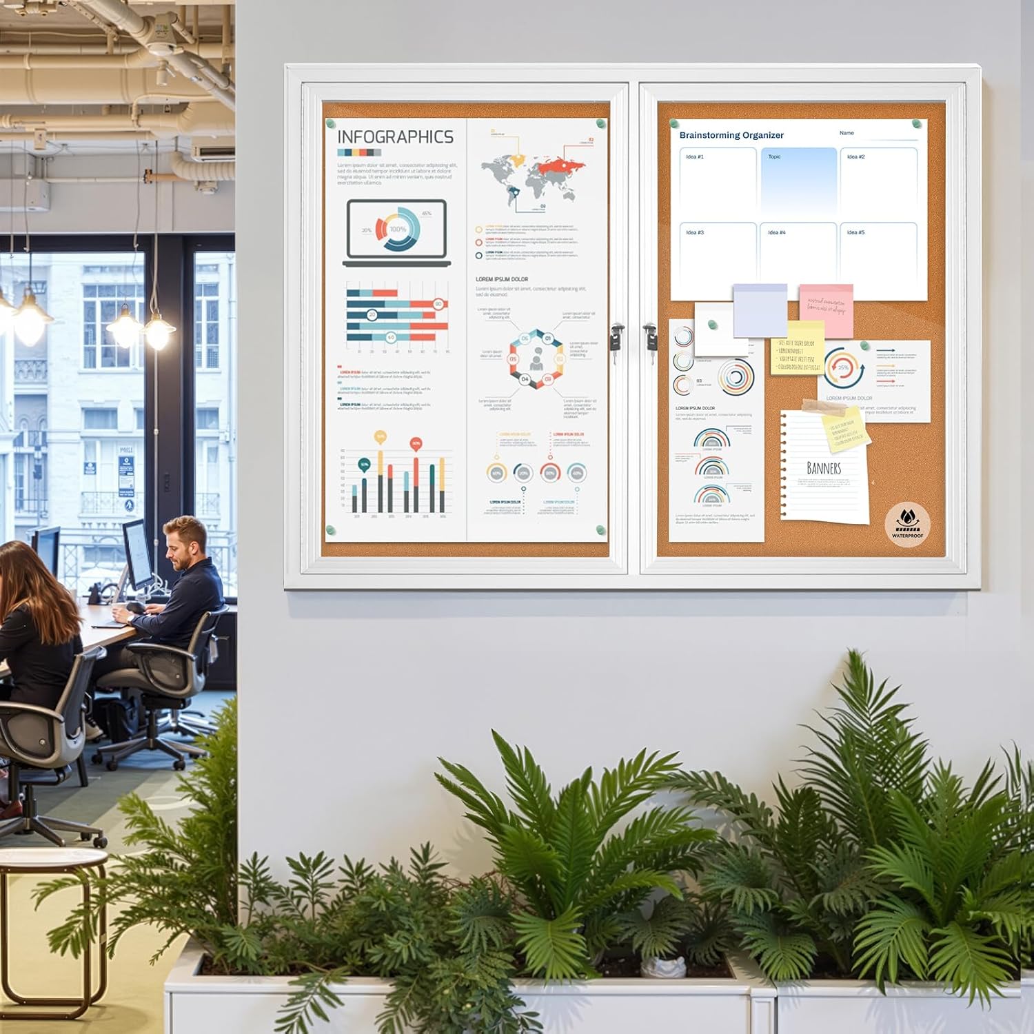 - Secure Locking Bulletin Board for Tamper-Proof Protection: Each of the swing-open glass doors comes with its own built-in lock and key set, ensuring your announcements stay secure in high-traffic areas. This enclosed bulletin board with locking door is designed to protect your content from tampering while keeping it visible to passersby.