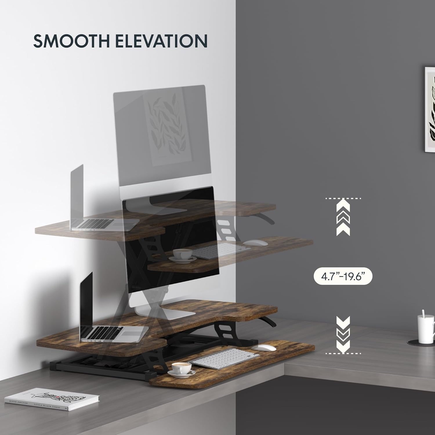 - Adjustable Heights for Your Dynamic Workflow: Adapt to any task with ease. The desk converter provides an adjustable height range of 4.7 to 16.6 inches, allowing you to customize your workspace for sitting and standing positions. Whether tackling focused tasks or embracing a more active workflow, this desk converter supports your dynamic work style for maximum comfort and efficiency.
