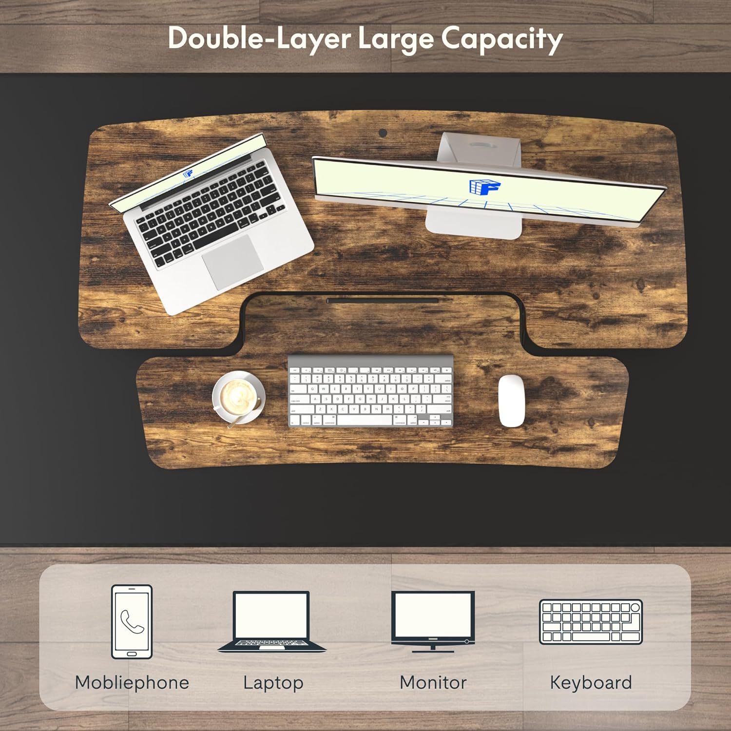 - Ergonomic Excellence for Enhanced Comfort: Prioritizing your well-being, our desk converter features a smooth height adjustment mechanism that effortlessly transitions between sitting and standing. The ergonomic design, complete with rounded edges, reduces wrist strain and enhances comfort, promoting healthier and more efficient work habits throughout your day.