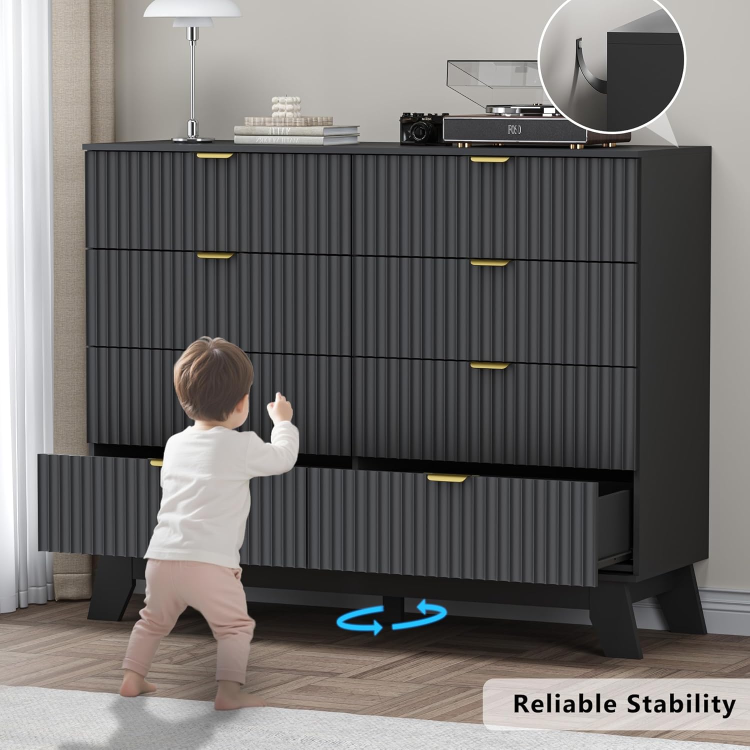- Elegant Fluted Design with a Taller Profile: With its increased height and signature fluted paneling, BORNOON 8-drawer dresser provides both aesthetic appeal and functional storage. The curved edges offer a touch of modern elegance, making it a statement piece for bedrooms, closets, or entryways.