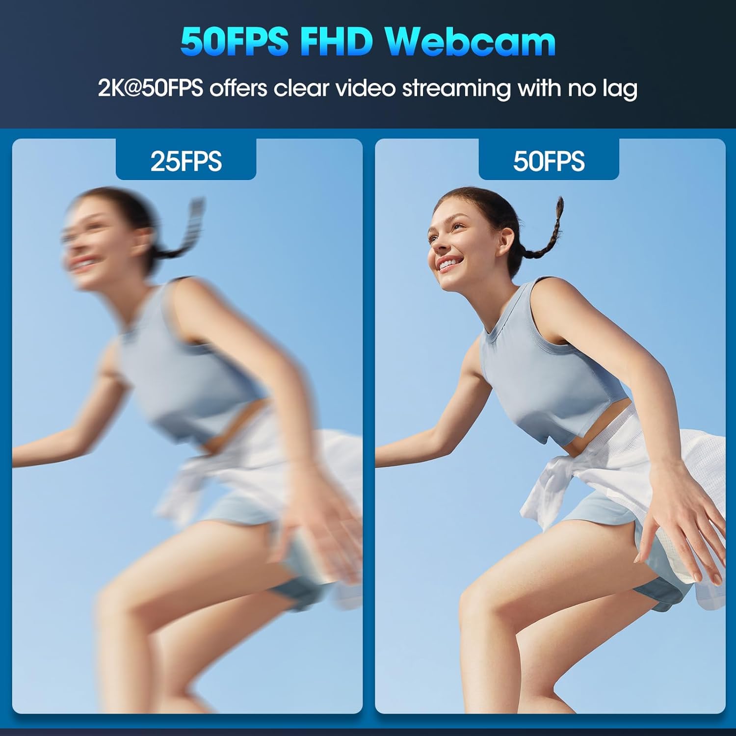 - 【QHD 2K Webcam Streaming Camera】with 4 megapixel sensor, supply 3 different resolutions( 2K, 1080p, 720p):2k@50fps, 1080p@60fps,720p@60fps, Fast 50fps/60fps frame rate for smooth live footage, improved video performance, this webcam also can supply 30fps (1440P/30fps,1080p/30fps and 720p/30fps) , create crystal-clear image.Perfect for gaming/streaming/video calling/conferencing /Recording /online school /Zoom / Facetime / Video Calling / OBS / Twitch / Facebook / YouTube / Xbox one
