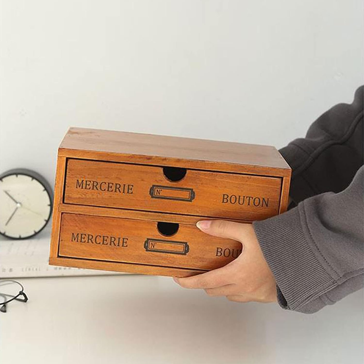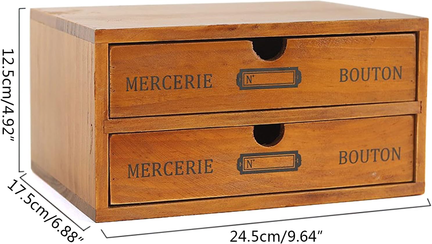 Vintage Drawer Wooden Drawers Organizer, 16-Drawer Desktop Organizer With Drawers, Iron Label Holders, Brown, For Store Cosmetics, Files, Books, Letters, Papers, Magazines (2-Drawer)