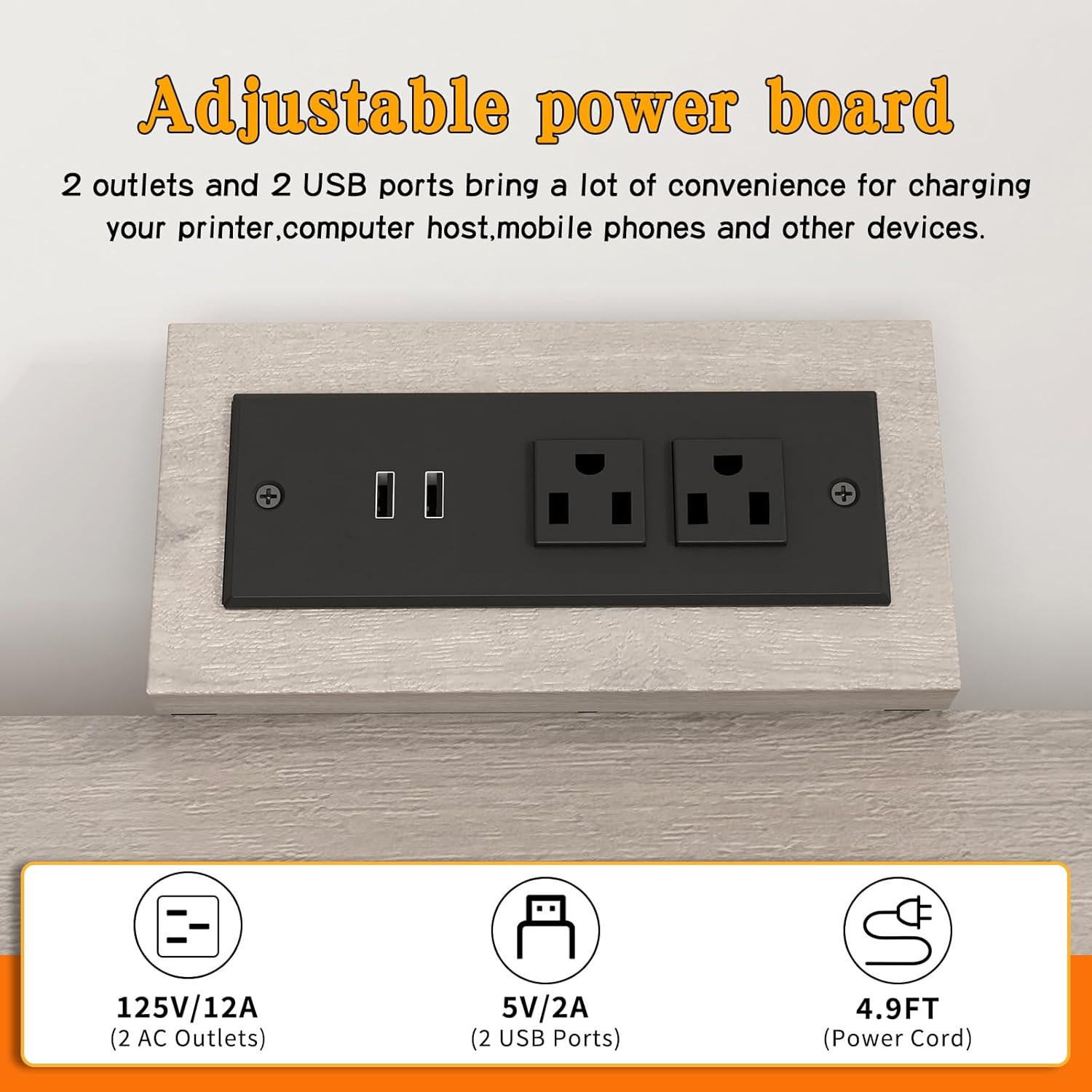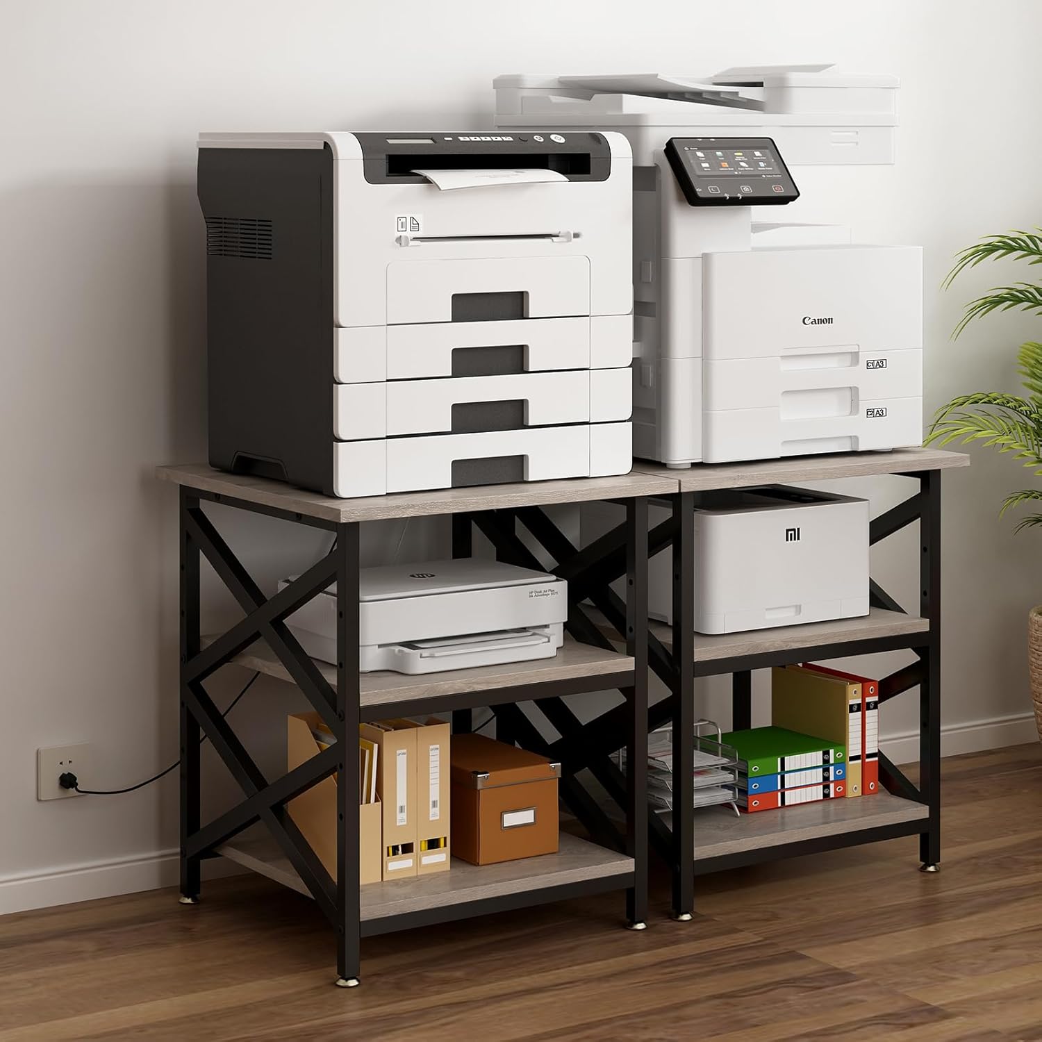 - 【Sturdy and Heavy&Built-in Power Outlets】each shelf is reinforced with a sturdy steel tube underneath for enhanced stability and impressive weight capacity. Built with premium particle board Printer table with charging station contains 2 power outlets and 2 USB charging ports