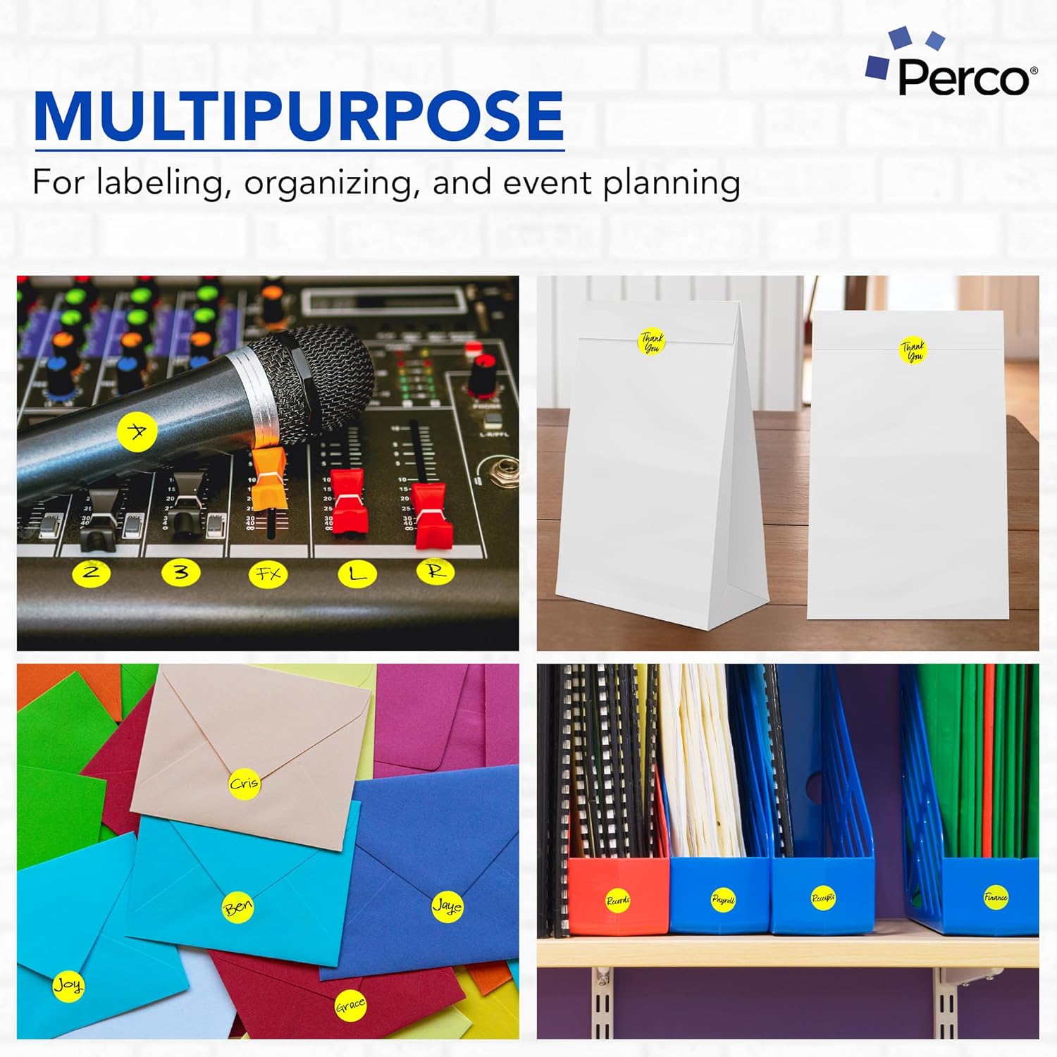 Perco Fluorescent Yellow 1-Inch Round Circle Dot Sticker Labels - Multi-Roll Pack (3 Rolls, 1,000 Labels Each) - Permanent Adhesive, Vibrant Colors, Strong Hold - Perforated for Easy Use - Made in USA