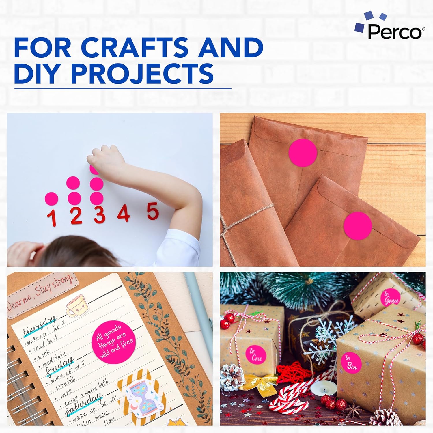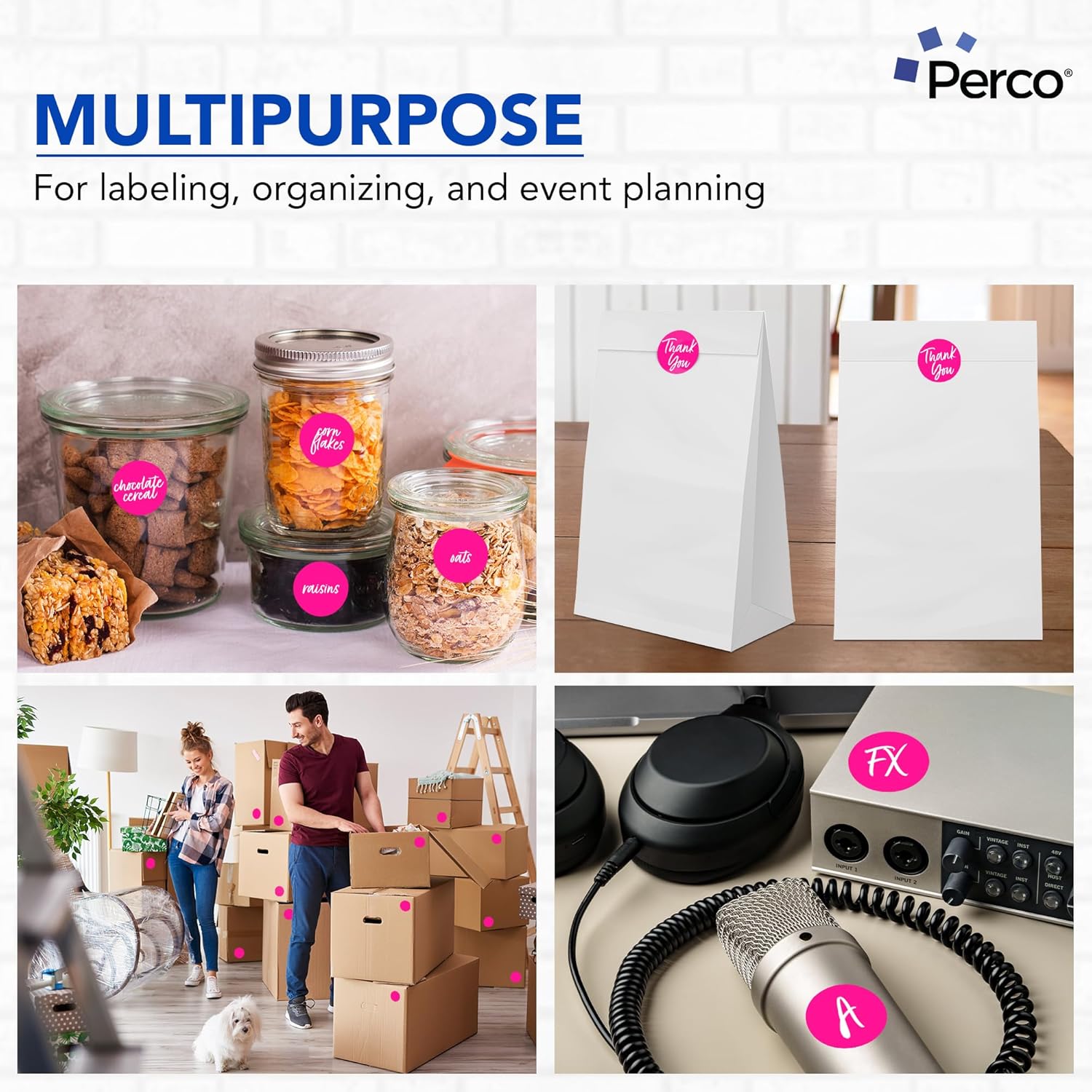 Perco Fluorescent Pink 2-Inch Round Circle Dot Sticker Labels - Multi-Roll Pack (3 Rolls, 500 Labels Each) - Permanent Adhesive, Vibrant Colors, Strong Hold - Perforated for Easy Use - Made in USA