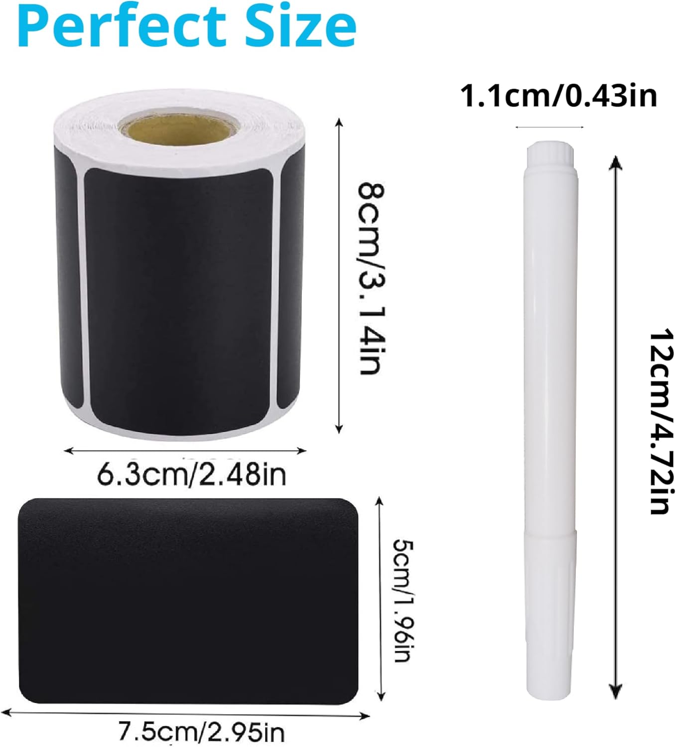 - 【Package Contents】Each package contains 1 rolls of stickers and 2 liquid white marker pens. A roll has 180 stickers. The removable sticker labels size is 2.95(L) x 1.97(W) inches, liquid white chalk pen size is 4.72(L) x 0.47(W) inches