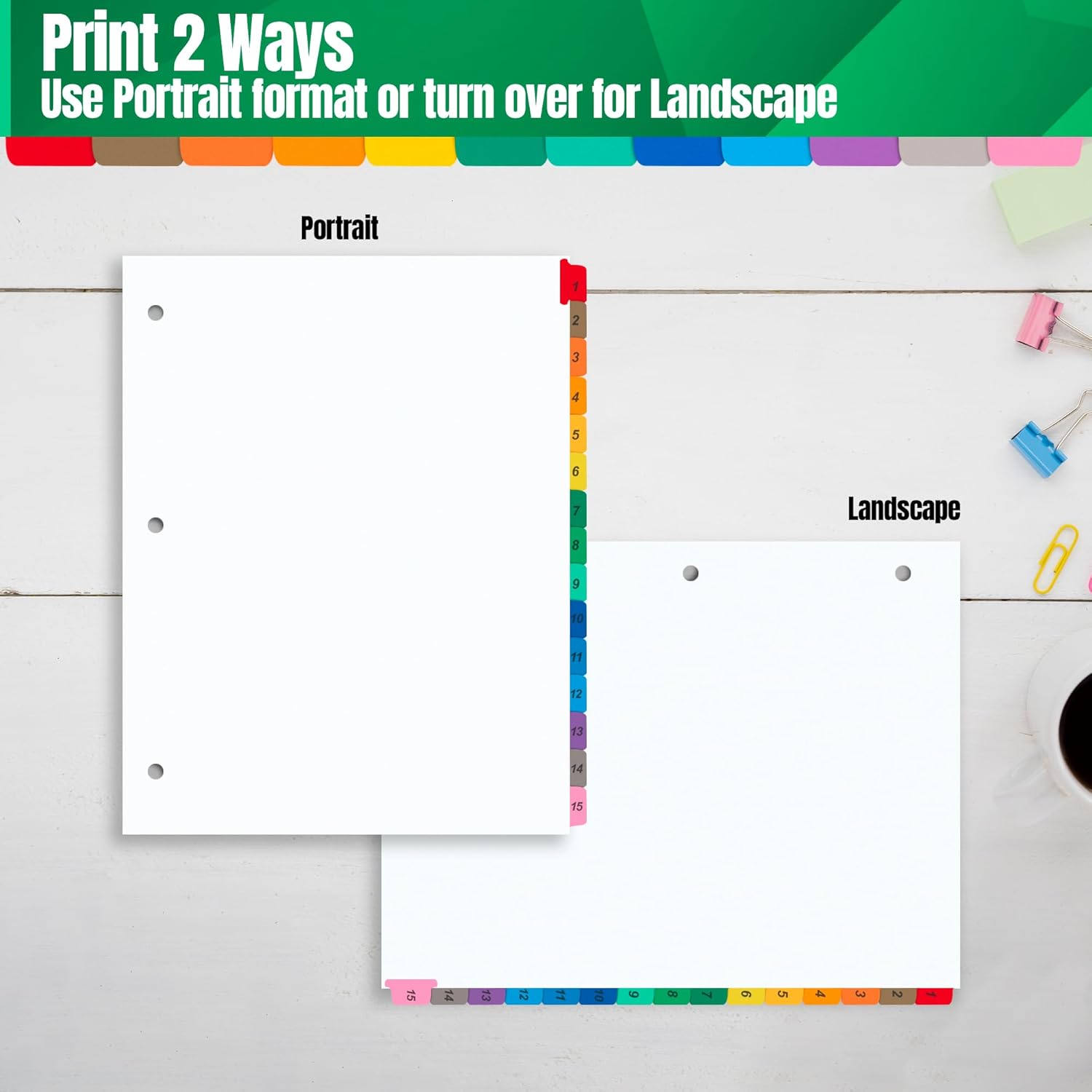 Tab Dividers for 3 Ring Binders – 6 Sets, 1–15 Numbered Index Dividers with Table of Contents – 8.5 x 11 in, 3-Hole Punched – Binder Dividers for School, Office, Filing, Organizing - 6 Pack
